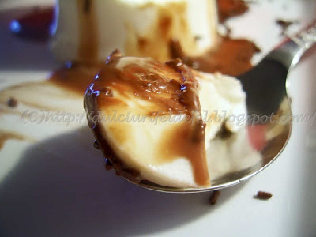 Panna cotta cu ciocolata PrecedentulUrmătorul DesertFoarte ușor2 h 20 m Trimite unui prieten Printează pagina Adresează o întrebare autorului Postează o poză cu rețeta gătită de tine Ingrediente 4 225 ml frisca lichida naturala 100 ml lapte 1 lingura zahar 10 g gelatina vanilie Sos de ciocolata 50 g ciocolata amaruie 50 ml frisca lichida