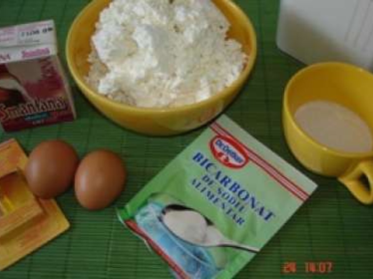 Papanasi din branza de vaci PrecedentulUrmătorul DesertFoarte ușor40 min Trimite unui prieten Printează pagina Adresează o întrebare autorului Postează o poză cu rețeta gătită de tine Ingrediente 5 500 gr branza de vaci 2 oua 1/2 lingurita de bicarbonat de sodiu cu putina zeama de lamaie 3 linguri de zahar vanilie smantana dulce putina sare faina cat cuprinde