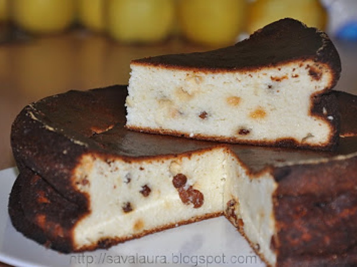 Pasca cu branza de vaci, fara aluat PrecedentulUrmătorul DesertFoarte ușor55 min Trimite unui prieten Printează pagina Adresează o întrebare autorului Postează o poză cu rețeta gătită de tine Ingrediente 8 1 kg. branza dulce de vaci 7 oua (mici) 420 g. zahar 4 pliculete zahar vanilat 4 linguri rase de faina 1 varf de cutit sare 2 linguri de gris 2 linguri cu varf de lapte praf 175 g. unt topit 5 g. praf de copt 80-100 g. stafide zahar pudra pentru ornat