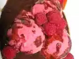 Deasupra puneti crema Chantily si decorati cu coulis de zmeura.