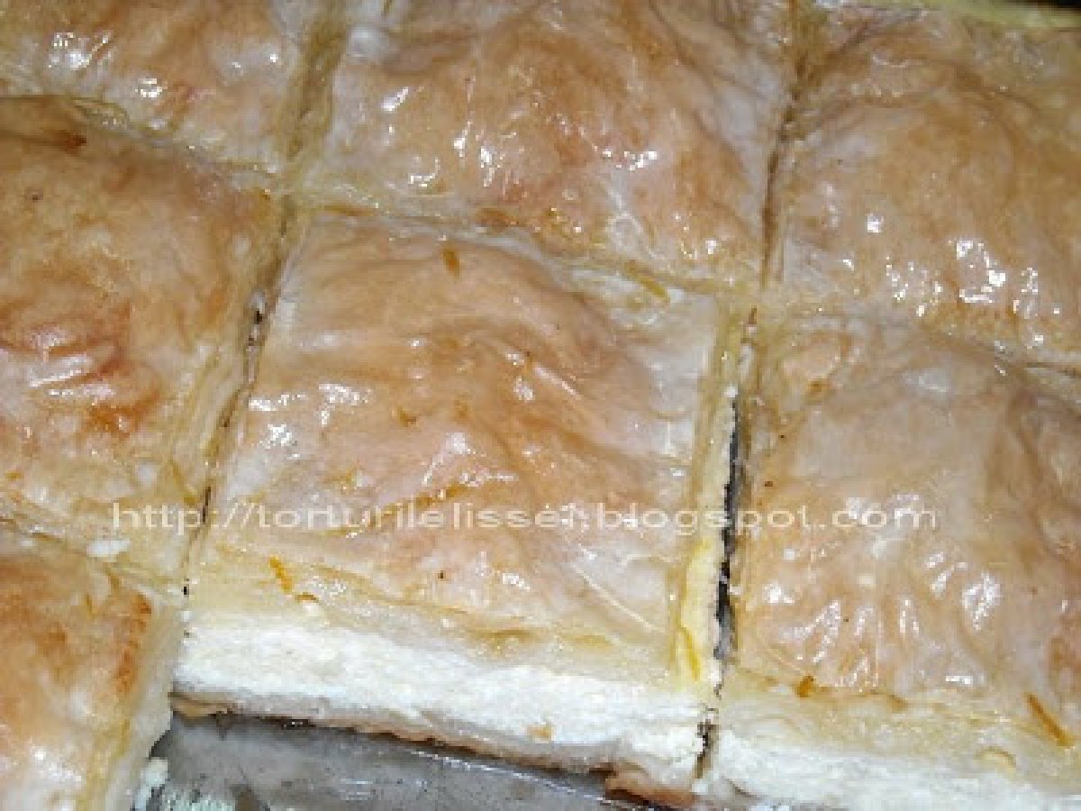 Placinta cu branza,insiropata! PrecedentulUrmătorul DesertFoarte ușor1 h 10 m Trimite unui prieten Printează pagina Adresează o întrebare autorului Postează o poză cu rețeta gătită de tine Ingrediente 4 700 g branza de vaca 150 g zahar 4 oua 1 g cu gris 2 plicuri vanilie si coaja rasa de lamaie Pentru sirop: 150 g zahar 250 ml apa.