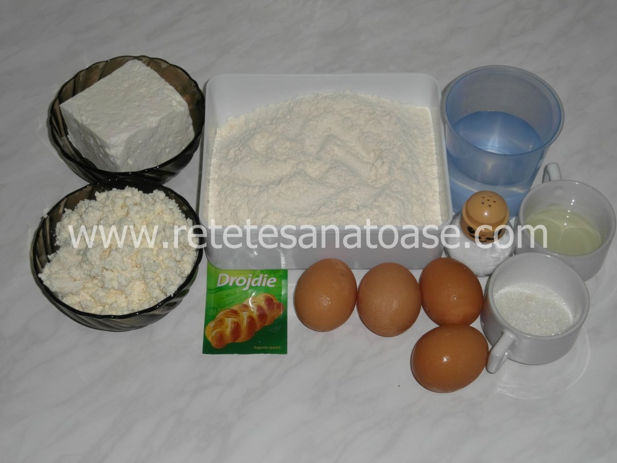 Placinta cu branza sarata PrecedentulUrmătorul DesertUșor1 h 10 m Trimite unui prieten Printează pagina Adresează o întrebare autorului Postează o poză cu rețeta gătită de tine Ingrediente 8 500 g faina 250 g telemea de vaca 250 g branza dulce de vaca 4 galbenusuri de ou 2 linguri ulei o lingura zahar 2 lingurite drojdie uscata o lingurita sare 300 ml apa