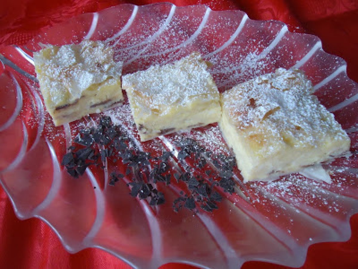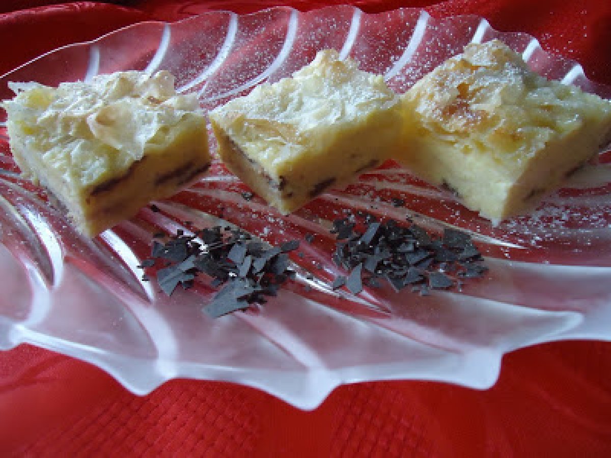 Placinta cu mascarpone,ricotta si ciocolata PrecedentulUrmătorul DesertFoarte ușor55 min Trimite unui prieten Printează pagina Adresează o întrebare autorului Postează o poză cu rețeta gătită de tine Ingrediente 5 un pachet foi de placinta, 250 g mascarpone, 250 g ricotta, 5 oua,zahar, un praf de sare, vanilie, coaja rasa de la o lamaie, unt topit pentru uns foile
