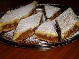 Placinta cu mere 1 DesertFoarte ușor1 h 25 m Trimite unui prieten Printează pagina Adresează o întrebare autorului Postează o poză cu rețeta gătită de tine Ingrediente 8 o cană de borş, o cană de ulei (cană de 200-250 ml) un praf de sare 25-30g de drojdie făină cât cuprinde pt un aluat bun de intins, 1,5 kg mere curăţate 5-6 linguri de zahăr zahăr pudră scortisoara 1 plic de zahăr vanilat pentru ornat