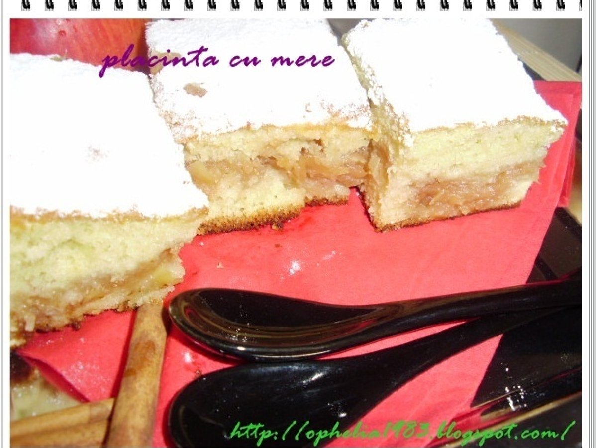 Placinta cu mere ( cu foaie turnata) PrecedentulUrmătorul DesertUșor1 h 10 m Trimite unui prieten Printează pagina Adresează o întrebare autorului Postează o poză cu rețeta gătită de tine Ingrediente 8 ptr. aluat : 4 oua intregi 18 linguri zahar 18 linguri ulei 18 linguri lapte 18 linguri faina 1 praf de copt pentru umplutura : 1,5 kg de mere zahar dupa gust scortisoara