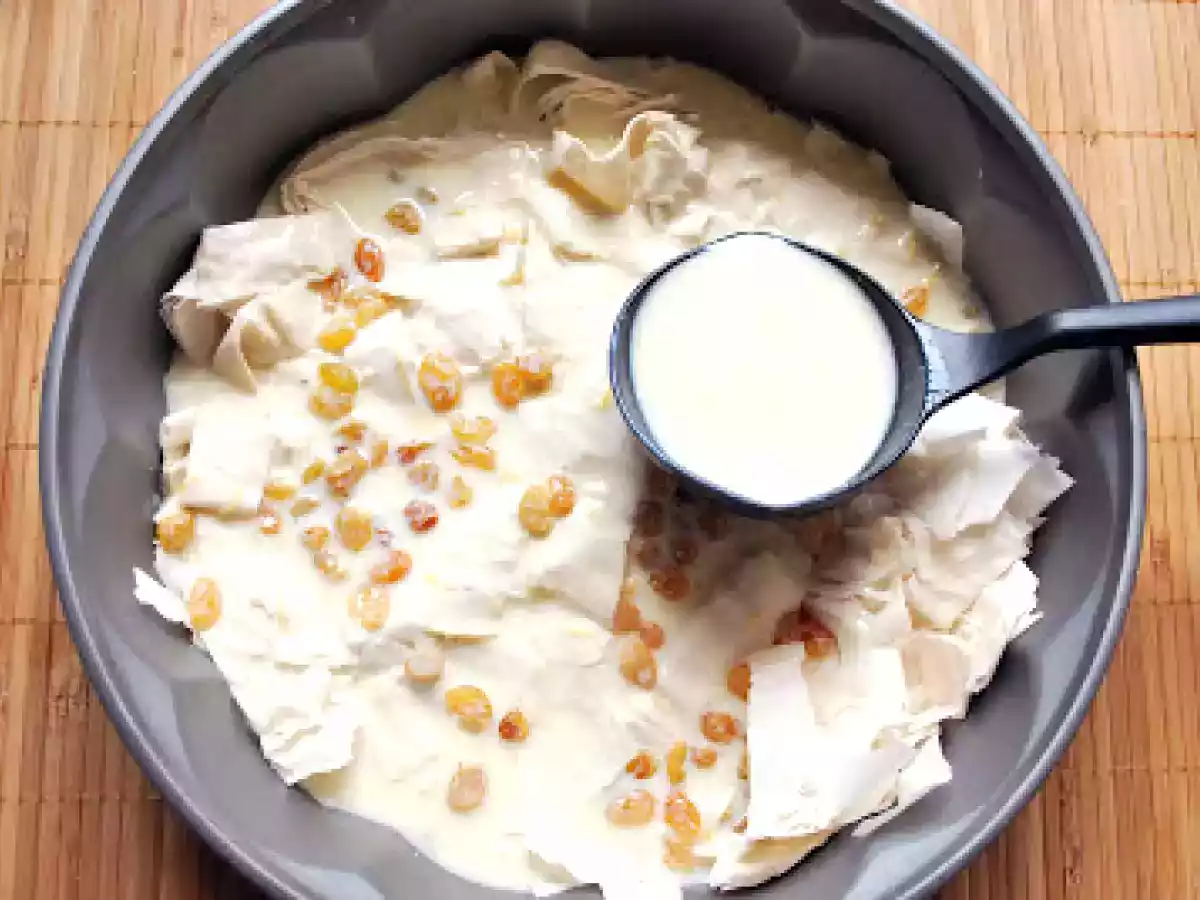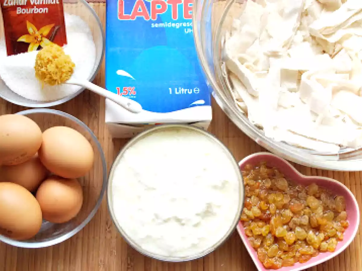 Placinta dulce cu lapte, iaurt si stafide! PrecedentulUrmătorul DesertFoarte ușor1 h 10 m Trimite unui prieten Printează pagina Adresează o întrebare autorului Postează o poză cu rețeta gătită de tine Ingrediente 4 800 ml lapte 300 g iaurt 5 oua 6 linguri zahar 1 plic zahar vanilat stafide 1 lingurita coaja lamaie zaharisita foi de placinta