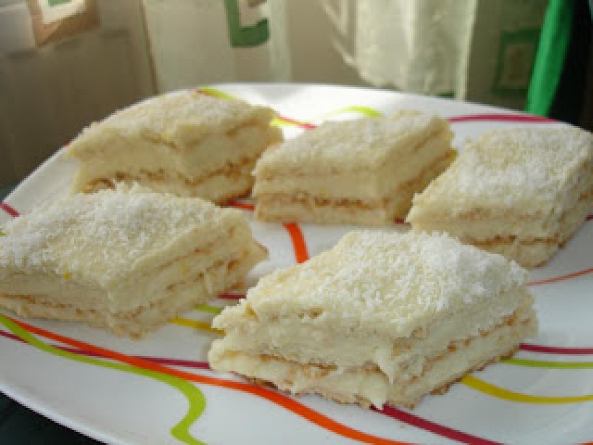 Prajitura alba ca zapada super cremoasa PrecedentulUrmătorul DesertFoarte ușor1 h 15 m Trimite unui prieten Printează pagina Adresează o întrebare autorului Postează o poză cu rețeta gătită de tine Ingrediente 4 Pt 3 foi: 7 linguri zahar 7 linguri ulei 7 linguri lapte 1 ou 1 lingurita amoniac stins faina Crema 1 litru lapte 15 linguri zahar 10 linguri fana 1 esenta vanilie 1 pachet unt coaja de la 1 lamaie 1/4 suc de la 1 lamaie