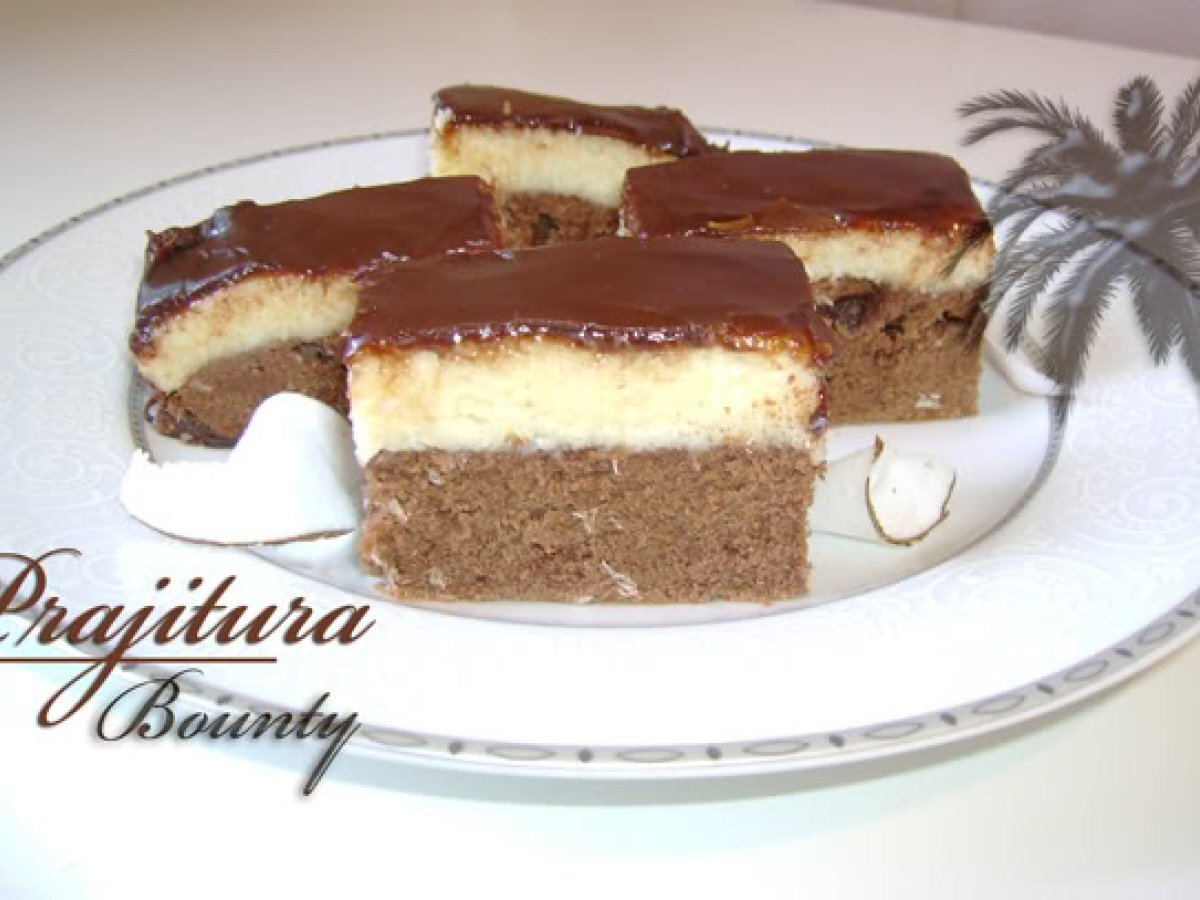 Prajitura bounty PrecedentulUrmătorul DesertFoarte ușor1 oră Trimite unui prieten Printează pagina Adresează o întrebare autorului Postează o poză cu rețeta gătită de tine Este delicioasa si chiar aduce la gust cu celebra ciocolata. Ingrediente 2 125 g unt 50 g zahar brun 3 oua 200 g faina 2 linguri cacao 2 linguri lapte 1 lingurita praf de copt Pentru crema: 300 ml lapte 3 linguri pline de gris 80 g unt 80 g zahar 100 g cocos vanilie Glazura: sos de ciocolata