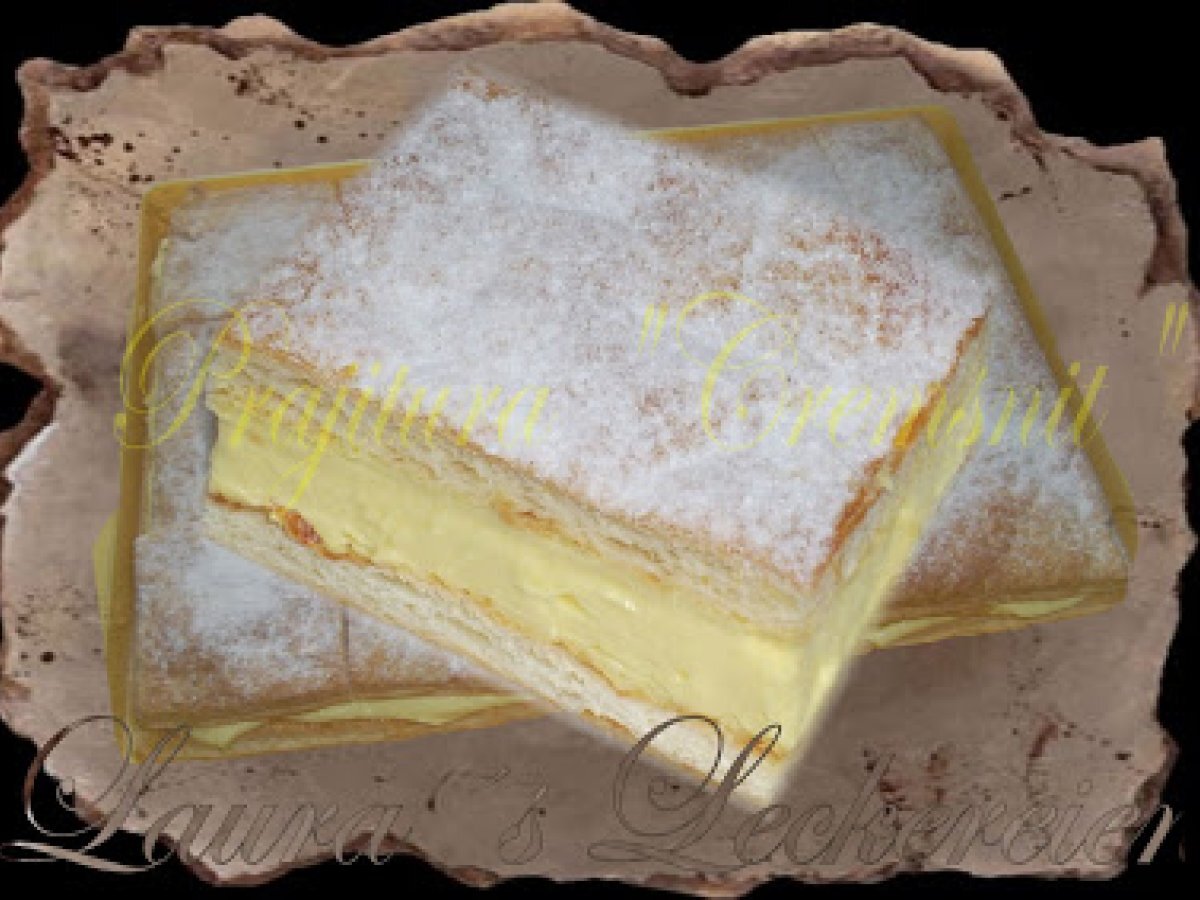Prajitura "cremsnit"(fara oua) DesertFoarte ușor50 min Trimite unui prieten Printează pagina Adresează o întrebare autorului Postează o poză cu rețeta gătită de tine Ingrediente 4 2 foi de aluat foetaj 25x40 cm 2 plicuri de praf de budinca vanilie 1/4 lingurita vanilie macinata sau esenta 850 ml lapte 150 g unt 100 g zahar 3 foi de gelatina