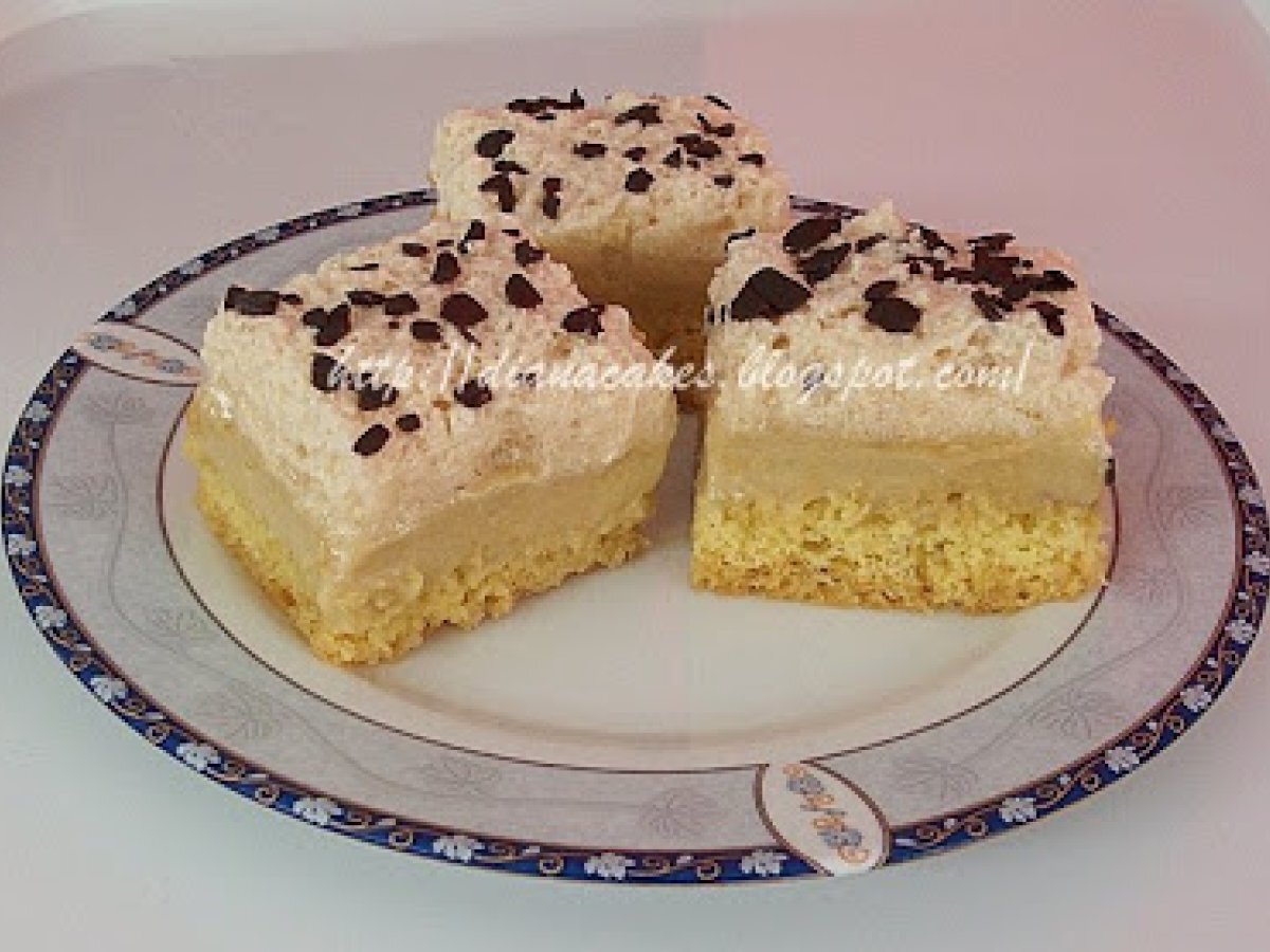 Prajitura cu bezea caramel PrecedentulUrmătorul DesertFoarte ușor50 min Trimite unui prieten Printează pagina Adresează o întrebare autorului Postează o poză cu rețeta gătită de tine Ingrediente 6 pt blat: 6 oua, 6 linguri zahar, 6 linguri faina, 1/2 praf de copt pt crema: 4 galbenusuri, 150 g zahar, 3 linguri faina, 300 ml lapte, 200 g unt, 3 plicuri zahar vanilat, 3 linguri cappuccino pt bezeaua caramel 4 albusuri, 8 linguri zahar,