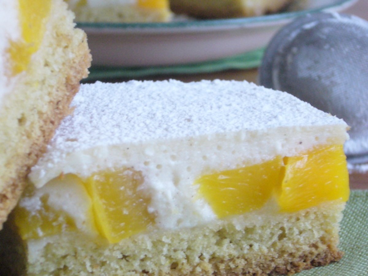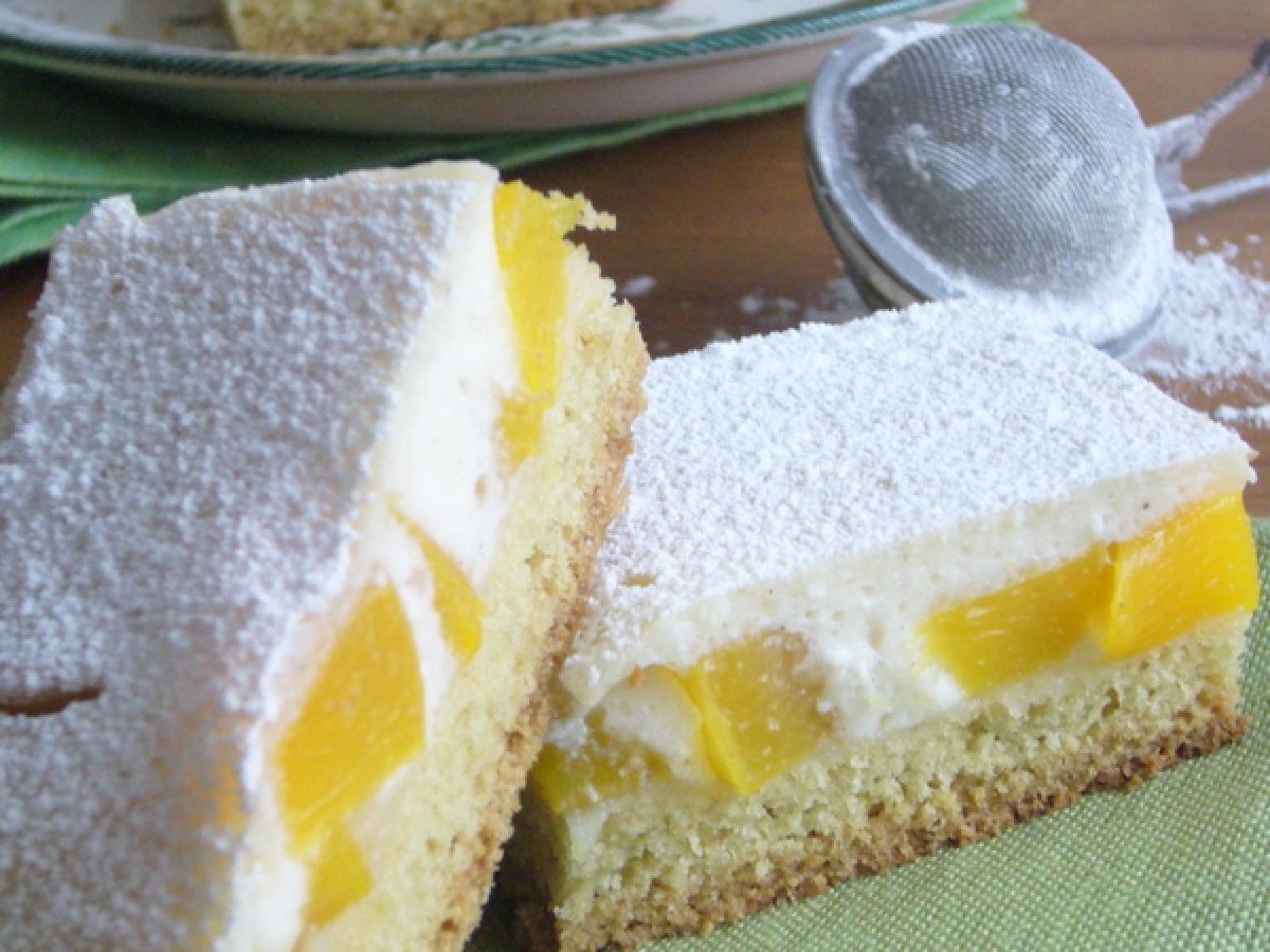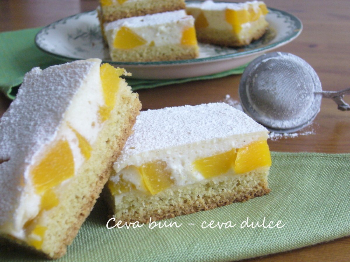 Prajitura cu branza si piersici