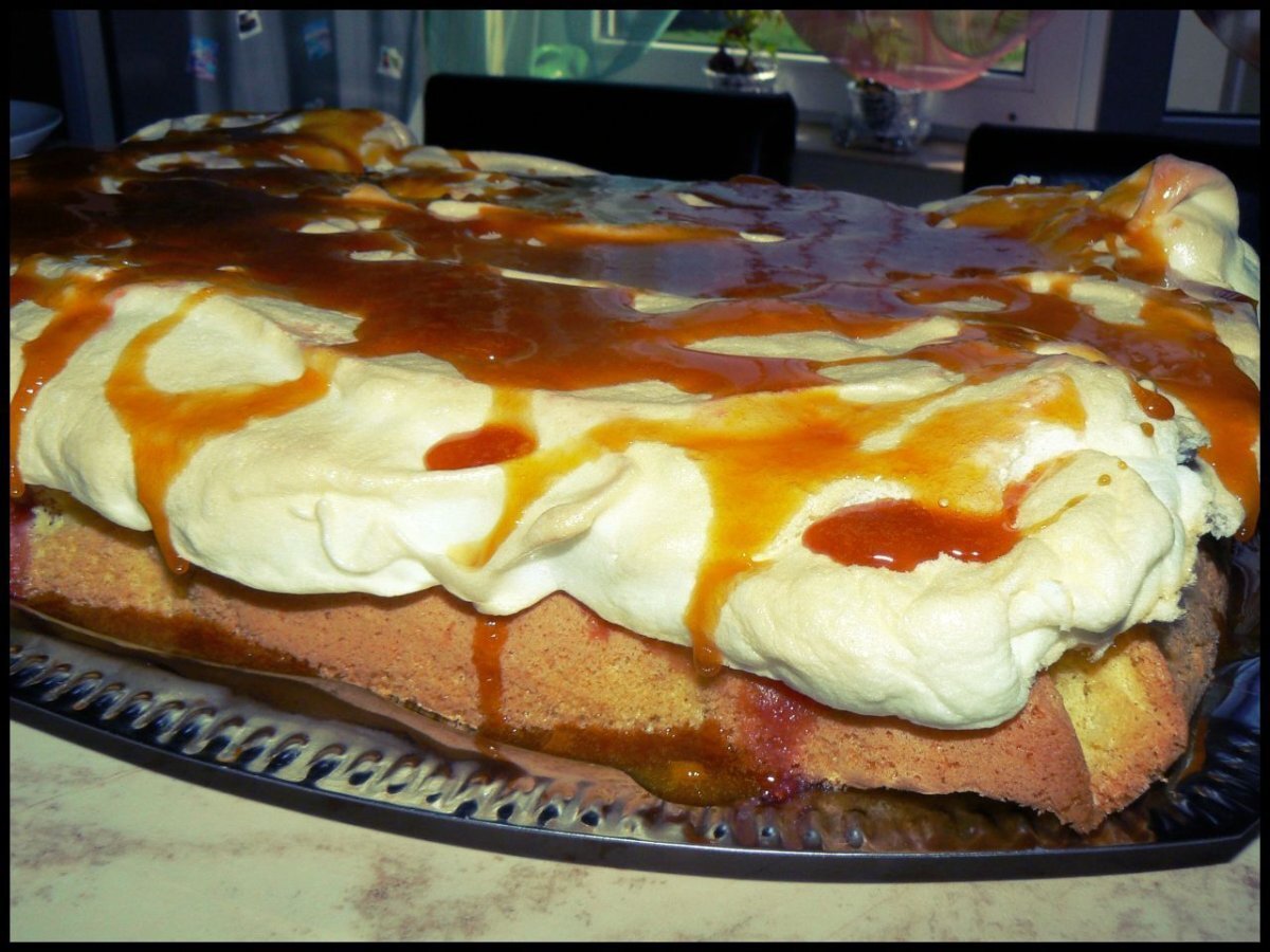Asteptam de foarte multa vreme sa pregatesc aceasta prajitura. A durat atat de mult pentru ca am asteptat capsunii proaspeti si cu gust de capsuni adevarati, din propria gradina. Capsunii, pot sa spun ca sunt fructele mele preferate, ma fascineaza culoarea lor minunata si mirosul lor atat de imbietor. Aceasta prajitura este un delicioasa, capsuni combinati cu bezea si sos de caramel…wooow deja salivez.
