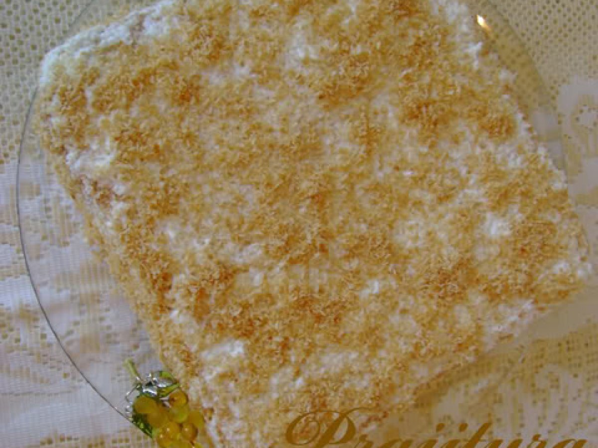 Prajitura cu crema de cocos PrecedentulUrmătorul DesertFoarte ușor50 min Trimite unui prieten Printează pagina Adresează o întrebare autorului Postează o poză cu rețeta gătită de tine Ingrediente 4 3 oua 100 g zahar 100 g faina 3 linguri cu nuca de cocos 1 lingurita de praf de copt 1 plic de vanilie Pentru crema: 1 albus de 250 g zahar pudra 90 g nuca de cocos 80 ml lapte Pentru deasupra: 45 g nuca de cocos usor rumenita