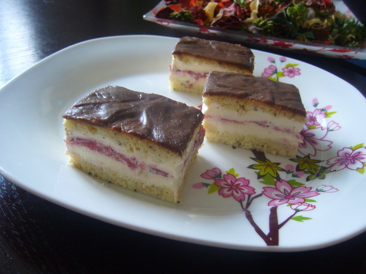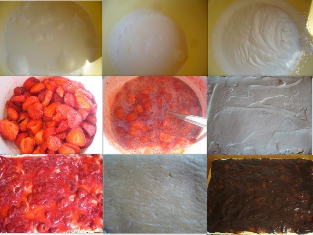 Prajitura cu crema mascarpone, jeleu de capsuni si ciocolata PrecedentulUrmătorul DesertUșor2 ore Trimite unui prieten Printează pagina Adresează o întrebare autorului Postează o poză cu rețeta gătită de tine Ingrediente 8 Blat: 10 albusuri, 5 galbenusuri, 10 lg zahar, 2 lg mac, 1 lingurita pref de copt, 10 lg faina. Crema: 500 gr mascarpone, 5 galbenusuri, 5 lg zahar, 200 ml frisca. Jeleu: 300-400 gr capsuni, 10 gr gelatina, 2 lg zahar. Glazura: 200 gr ciocolata, 50 ml frisca, 50 gr unt.