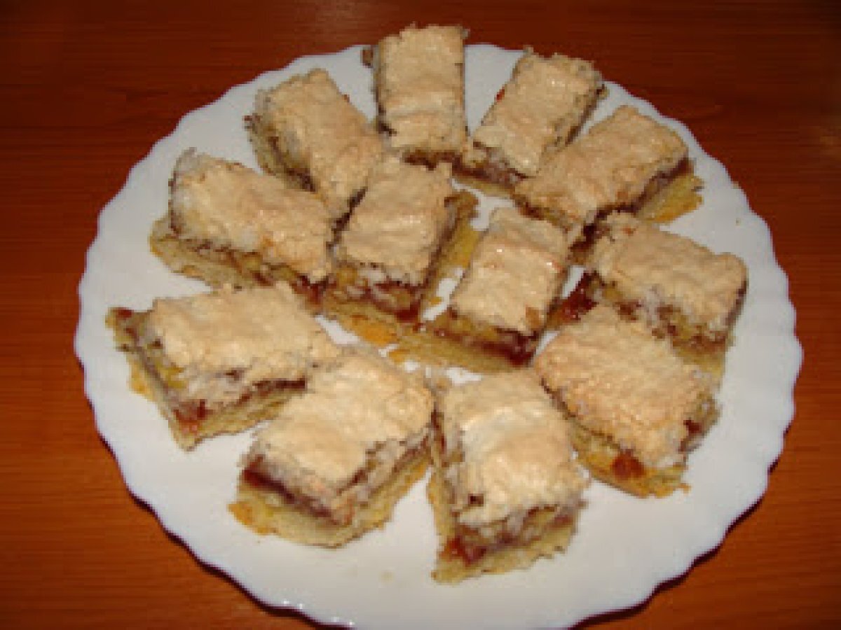 Prajitura cu dulceata, cocos si bezea PrecedentulUrmătorul DesertFoarte ușor45 min Trimite unui prieten Printează pagina Adresează o întrebare autorului Postează o poză cu rețeta gătită de tine Ingrediente 2 500 g faina 250 g margarina 2 oua + 3 albusuri coaja rasa de la o jumatate lamaie 100 g zahar pudra 4 linguri nuca cocos 1 praf copt 1 lingurita otet 300 g dulceata/ gem sare