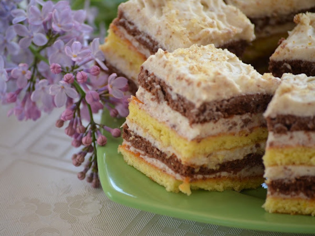 Foi pufoase de pandispan, crema fina de lapte, parfum de vanilie, gust subtil de nuca , aroma delicata de portocala...si nu doar atat. Clar rezumatul nu e suficient pentru a descrie reteta ce urmeaza sa v-o prezint, dar va puteti face o parere despre minunatele ingrediente pe care le contine. Reteta? Urmeaza acum :P
