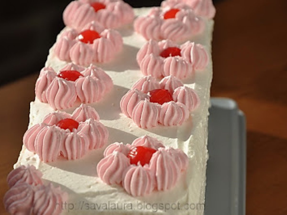 Prajitura cu frisca si rom PrecedentulUrmătorul DesertFoarte ușor55 min Trimite unui prieten Printează pagina Adresează o întrebare autorului Postează o poză cu rețeta gătită de tine Ingrediente 12 Pentru blat: 125 g. unt 200 g. zahar 5 oua 150 g. faina 50 g. amidon 1 pliculet praf de copt Pentru umplutura: 125 ml. lapte 80-100 g. zahar 2 pliculete zahar vanilat 6 foi de gelatina sau 1 pliculet gelatina granule 4 linguri de rom sau 1, 2 lingurite esenta de rom 300 ml. frisca lichida 250 g. gem de caise Pentru insiropat: lapte caramel, facut intocmai ca aici: Bounty-bars Pentru ornat: 300 ml. frisca cirese glasate colorant alimentar rosu