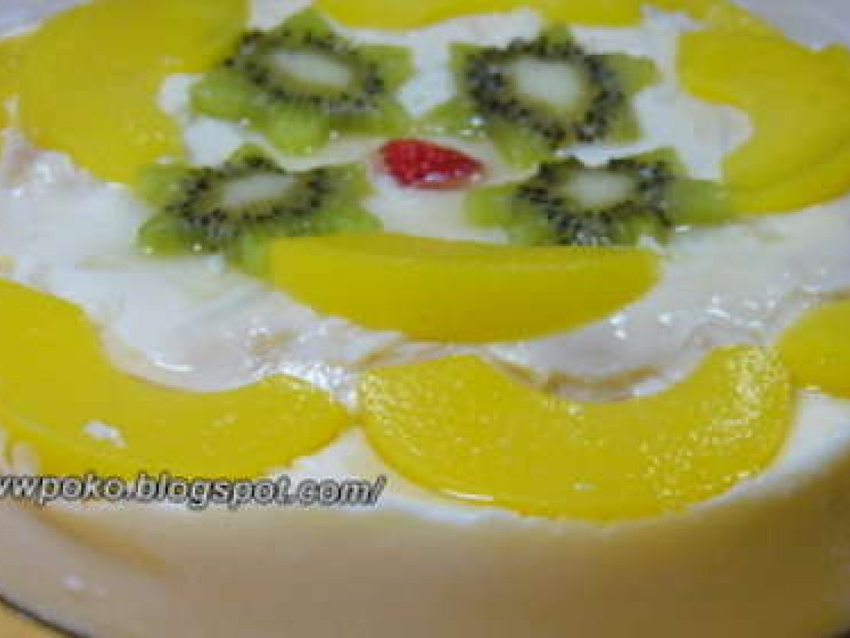 Prajitura cu fructe si crema de vanilie PrecedentulUrmătorul DesertUșor1 h 20 m Trimite unui prieten Printează pagina Adresează o întrebare autorului Postează o poză cu rețeta gătită de tine Ingrediente 8 Pentru blat: 180 g unt,180 g zahar,1 plic zahar vanilat,3 oua,180 g faina,1 plic praf de copt,1 lingura unt si faina pentru tava. Pentru umplutura: 1 plic praf pentru budinca de vanilie,2 plicuri(20g) gelatina,550 ml lapte,4-5 linguri zahar,1 cutie compot ananas,200 g fructe de sezon sau evotice,200 ml frisca lichida.