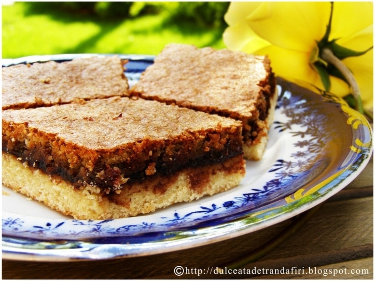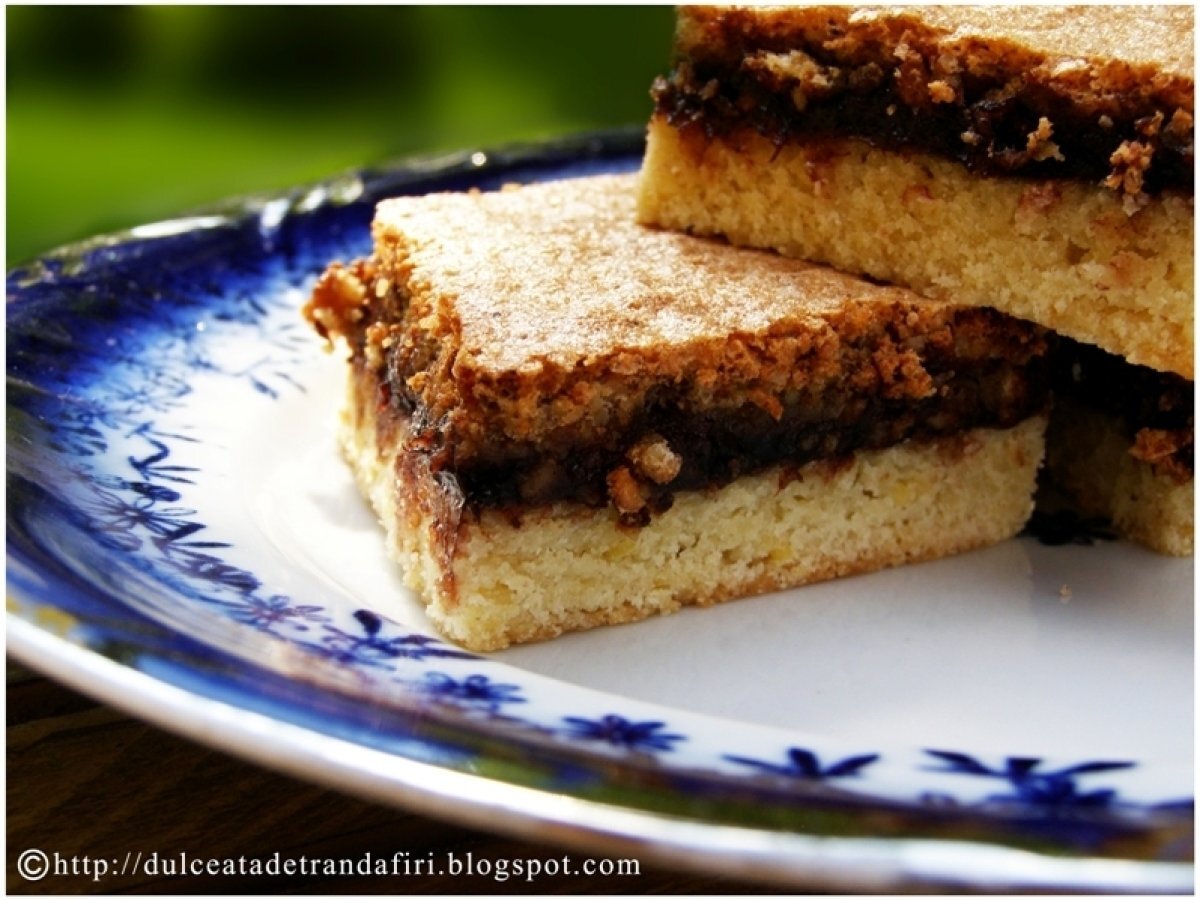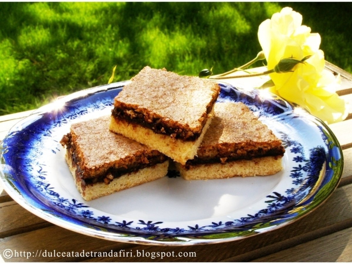 Prajitura cu gem de prune PrecedentulUrmătorul DesertUșor1 h 5 m Trimite unui prieten Printează pagina Adresează o întrebare autorului Postează o poză cu rețeta gătită de tine Ingrediente 8 Ingrediente pentru o tava de 38cm x 25cm: Aluat: 1. 250 gr unt 2. 250 gr zahar 3. 5 galbenusuri 4. 1 ou intreg 5. aprox. 400 gr faina Umplutura: 1. 350 gr gem de prune 2. 200 gr zahar 3. 5 albusuri 4. 100 gr nuci pisate 5. 50 gr migdale 6. o lingurita otet