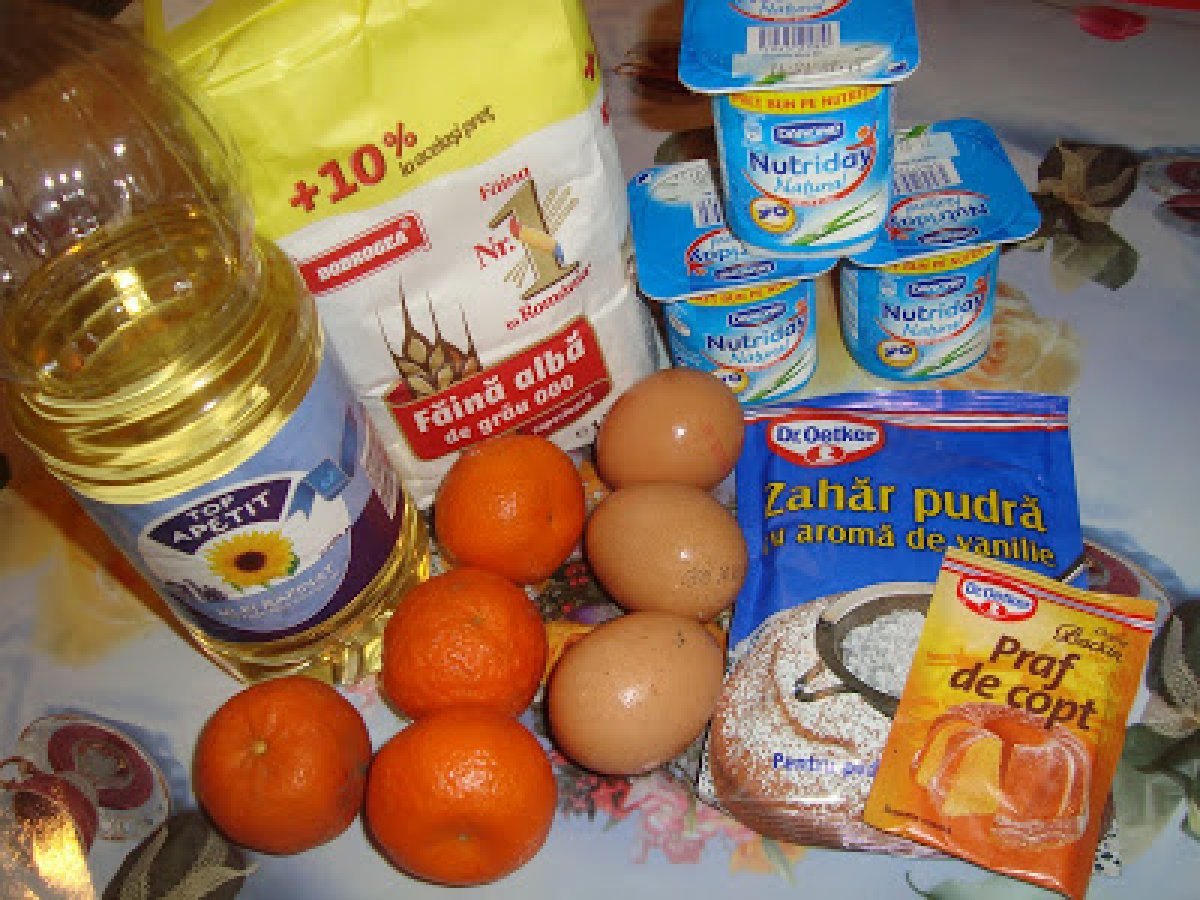 Prajitura cu iaurt si clementine PrecedentulUrmătorul DesertFoarte ușor50 min Trimite unui prieten Printează pagina Adresează o întrebare autorului Postează o poză cu rețeta gătită de tine E o prajitura cremoasa, cu gust racoritor dulce acrisor. Ingrediente 4 300 g iaurt 200 g faina 3 oua 50 ml ulei 15o g zahar vanilat un pachetel praf copt 4-5 clementine