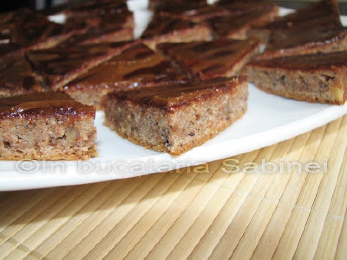 Prajitura cu mac glazurata PrecedentulUrmătorul DesertFoarte ușor1 h 20 m Trimite unui prieten Printează pagina Adresează o întrebare autorului Postează o poză cu rețeta gătită de tine Ingrediente 4 200 g margarina 100 g zahar pudra 3 linguri seminte mac 2 linguri de miere o mana de nuci 250 ml apa minerala 1/2 plic praf de copt 150 g faina alba 200 g faina integrala 1 plic zahar vanilat 1 praf de sare 1 plic glazura ciocolata 1 plic glazura caramel