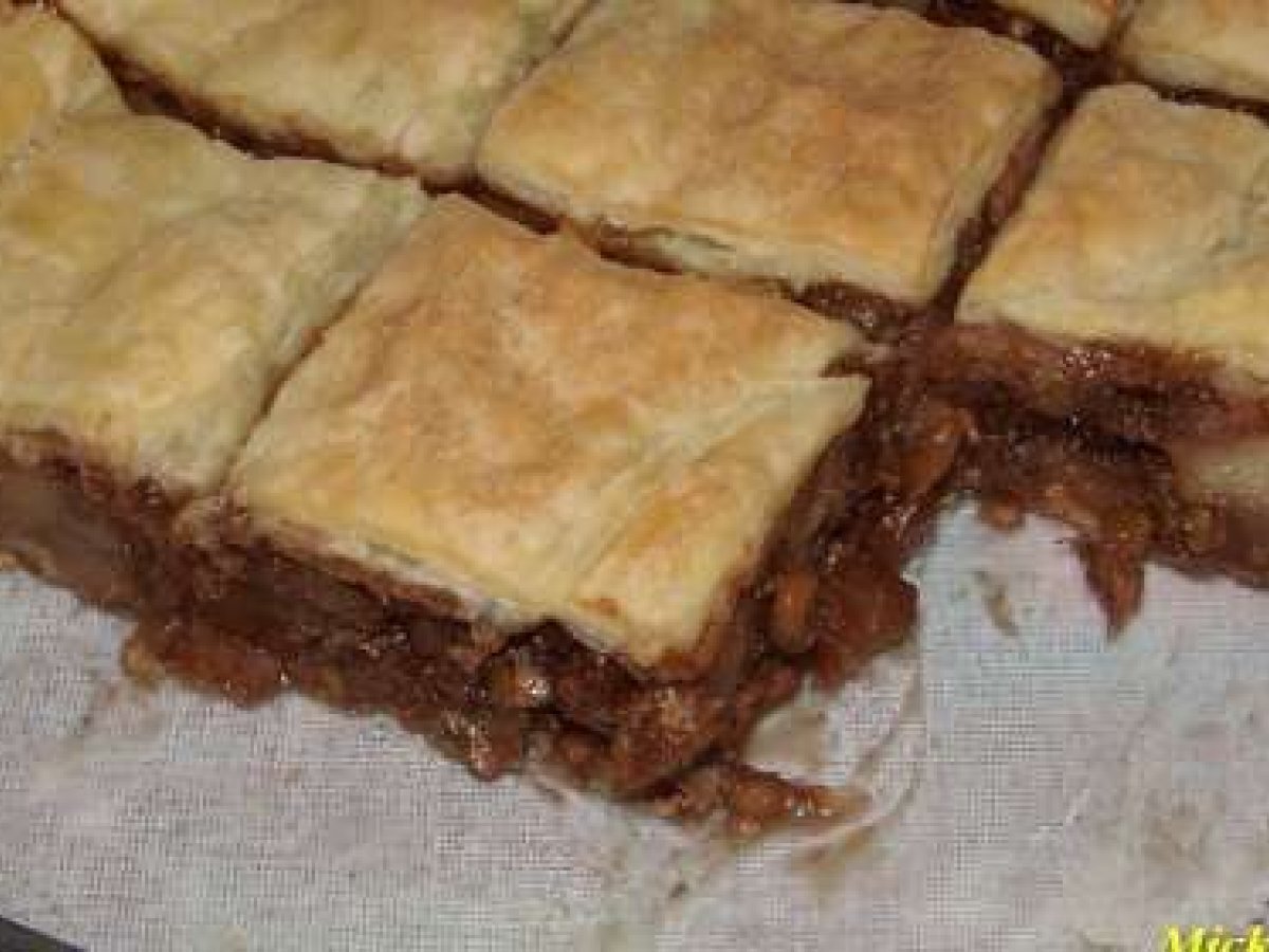 Prajitura cu mere, nuca si stafide PrecedentulUrmătorul DesertUșor1 h 20 m Trimite unui prieten Printează pagina Adresează o întrebare autorului Postează o poză cu rețeta gătită de tine Ingrediente 8 1 pachet foi de placinta 2 kg mere 200 g stafide 200 g nuci 200 g zahar 1 lingurita scortisoara 2 linguri cacao
