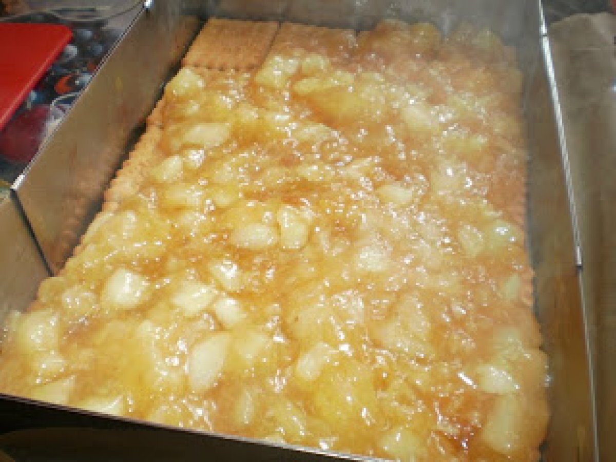 Prajitura cu mere si biscuiti(de post) PrecedentulUrmătorul DesertFoarte ușor50 min Trimite unui prieten Printează pagina Adresează o întrebare autorului Postează o poză cu rețeta gătită de tine Ingrediente 12 60 biscuiti simpli 2 kg mere 500 g zahar 4 plicuri budinca de vanilie 1,2 l apa 150 g stafide esenta de vanilie scortisoara 100 ml rom