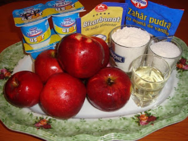 Prajitura cu mere si iaurt PrecedentulUrmătorul DesertFoarte ușor1 oră Trimite unui prieten Printează pagina Adresează o întrebare autorului Postează o poză cu rețeta gătită de tine Ingrediente 4 1 kg mere 600 g iaurt 10 linguri ulei 10 linguri zahar 16 linguri faina 1 lingurita bicarbonat vanilie,scortisoara