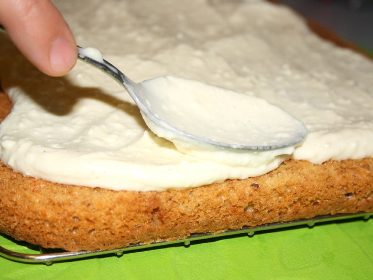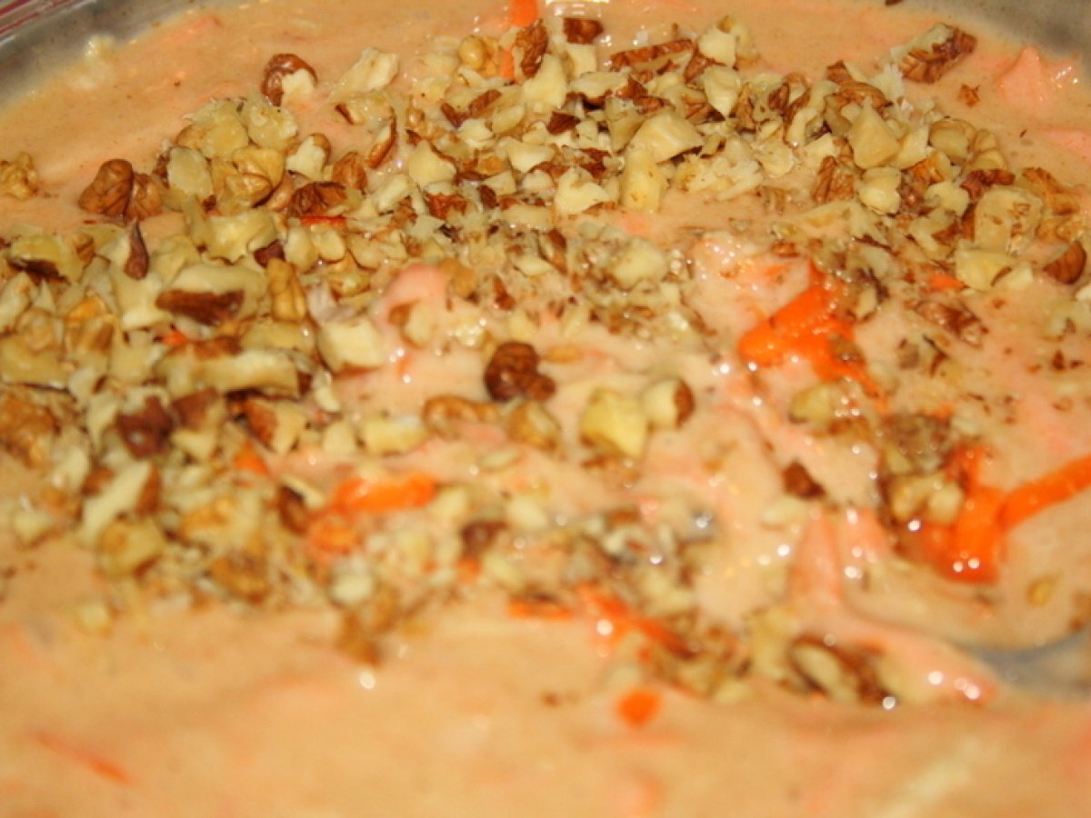 Prajitura cu morcovi si ghimbir PrecedentulUrmătorul DesertFoarte ușor45 min Trimite unui prieten Printează pagina Adresează o întrebare autorului Postează o poză cu rețeta gătită de tine Ingrediente 6 * 4 morcovi, rasi, * o bucatica mica (cam 2cm) de ghimbir ras, * 300g faina, * 200g zahar, * 150ml ulei, * 4 oua, * 100g nuci tocate, * o lingurita de praf de copt, * o lingurita de bicarbonat de sodiu, * o lingurita de scortisoara, * un praf de nucsoara * un praf de sare. * Pentru glazura * dintr-un pachet de crema de branza (nesarata!), * 100g unt, * 200g zahar pudra, * 1 lingurita esenta de vanilie * 100g nuci tocate.