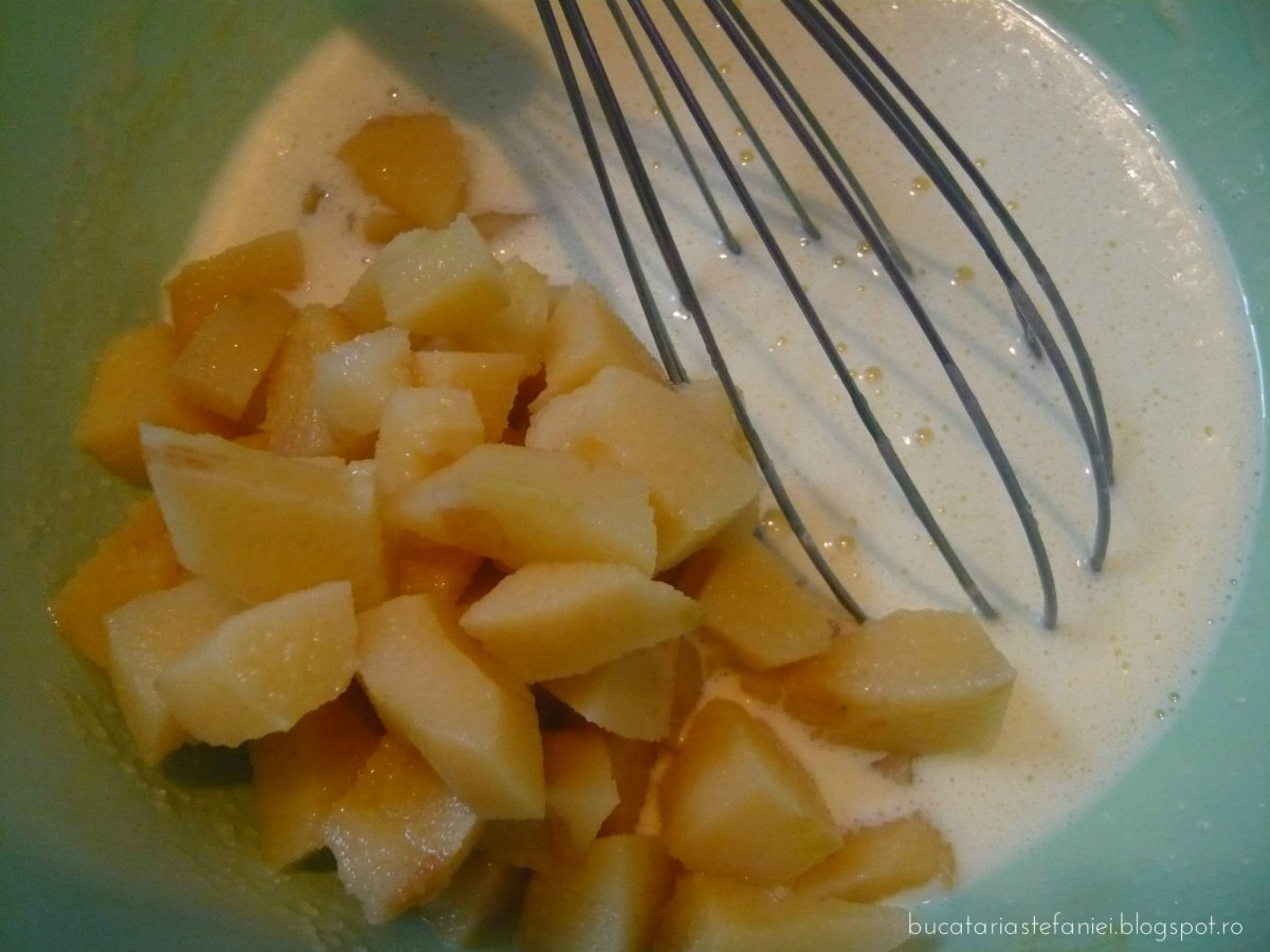 Nu este mare suparare daca nu gasiti gutui, puteti folosi si mere. Pentru ca se gasesc la tot pasul binenteles ca se vor folosi mere proaspete curatate de coaja. Mai aveam doua borcane de compot si drept urmare am facut doua prajituri. Prima s-a mancat cat ai spune peste si pentru ca vroiam sa vad cum este rece am pus imediat la copt si a doua prajitura de care nu ne-am atins pana nu s-a racit. La gust este exact ca o turta dulce cu scortisoara si cuisoare, usor insiropata si foarte pufoasa.