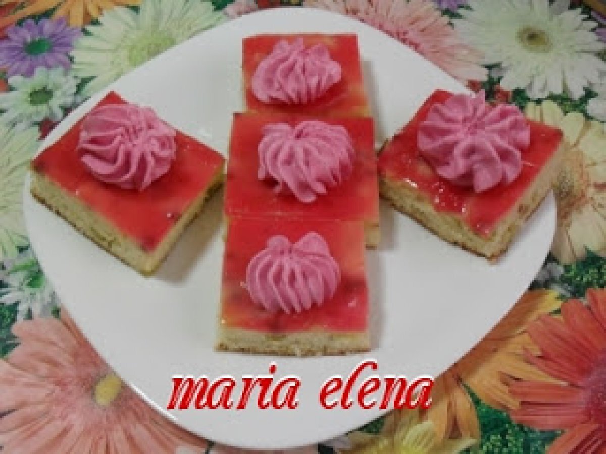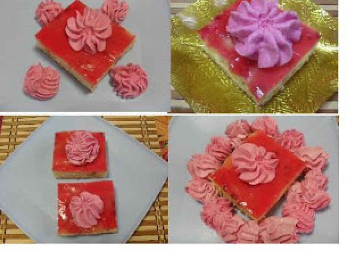 Prajitura cu rabarbura, budinca, tort-gelee si frisca votează acum PrecedentulUrmătorul DesertFoarte ușor50 min Trimite unui prieten Printează pagina Adresează o întrebare autorului Postează o poză cu rețeta gătită de tine Ingrediente 6 pentru blat: 4 oua, 4 linguri zahar, 2 linguri de apa, 4 linguri cu varf de faina, un praf de sare, 1/2 praf - de copt, tije de rabarbura. Pt budinca : 1 plic budinca de vanilie cu capsuni Dr Oetker, lapte, zahar. Pt ornat: 1 plic tort-gelee rosu, 2 maini de loboda rosie, fiarta in 200 ml apa, 1 plic praf frisca , 4 vanilii.