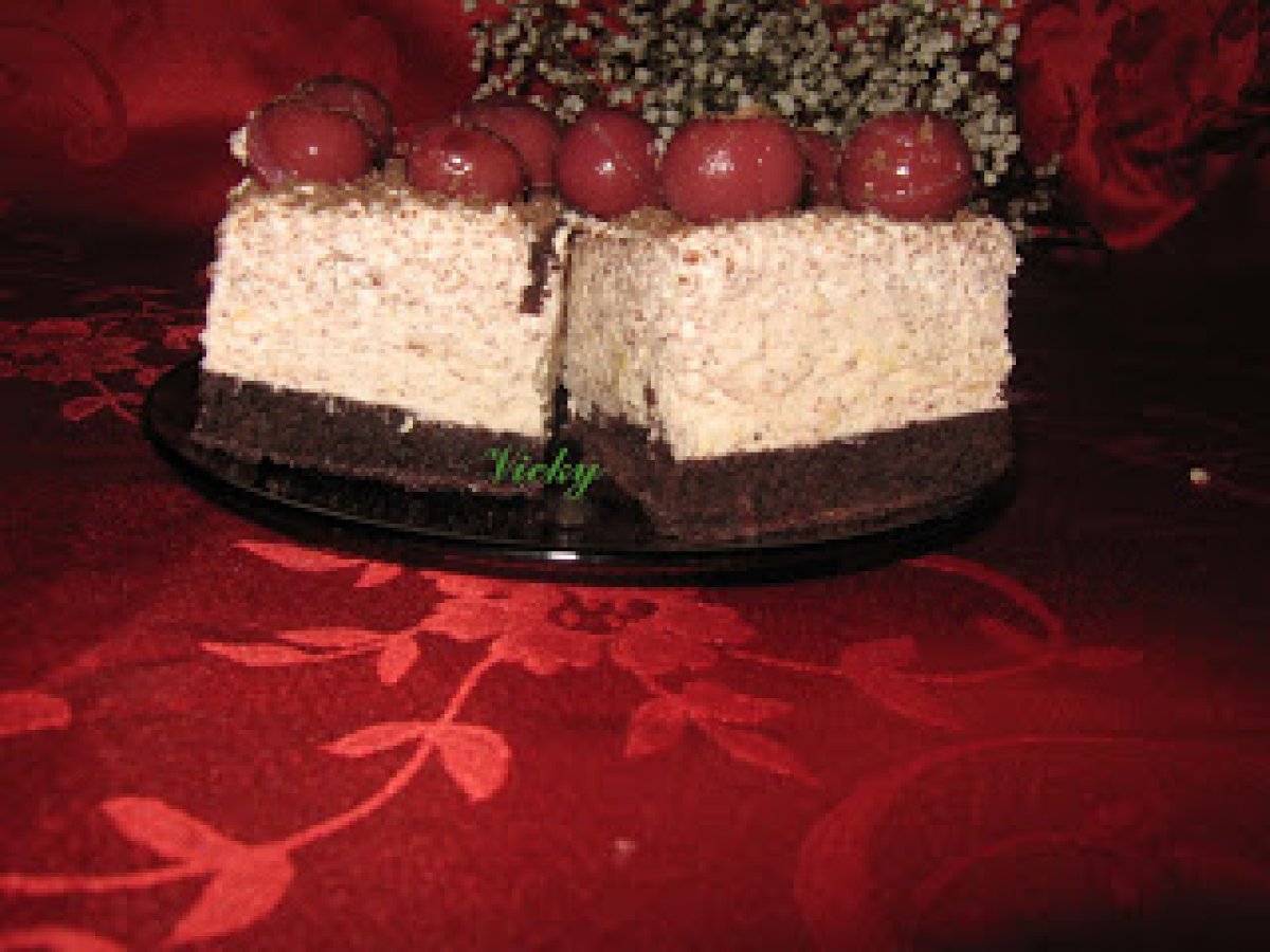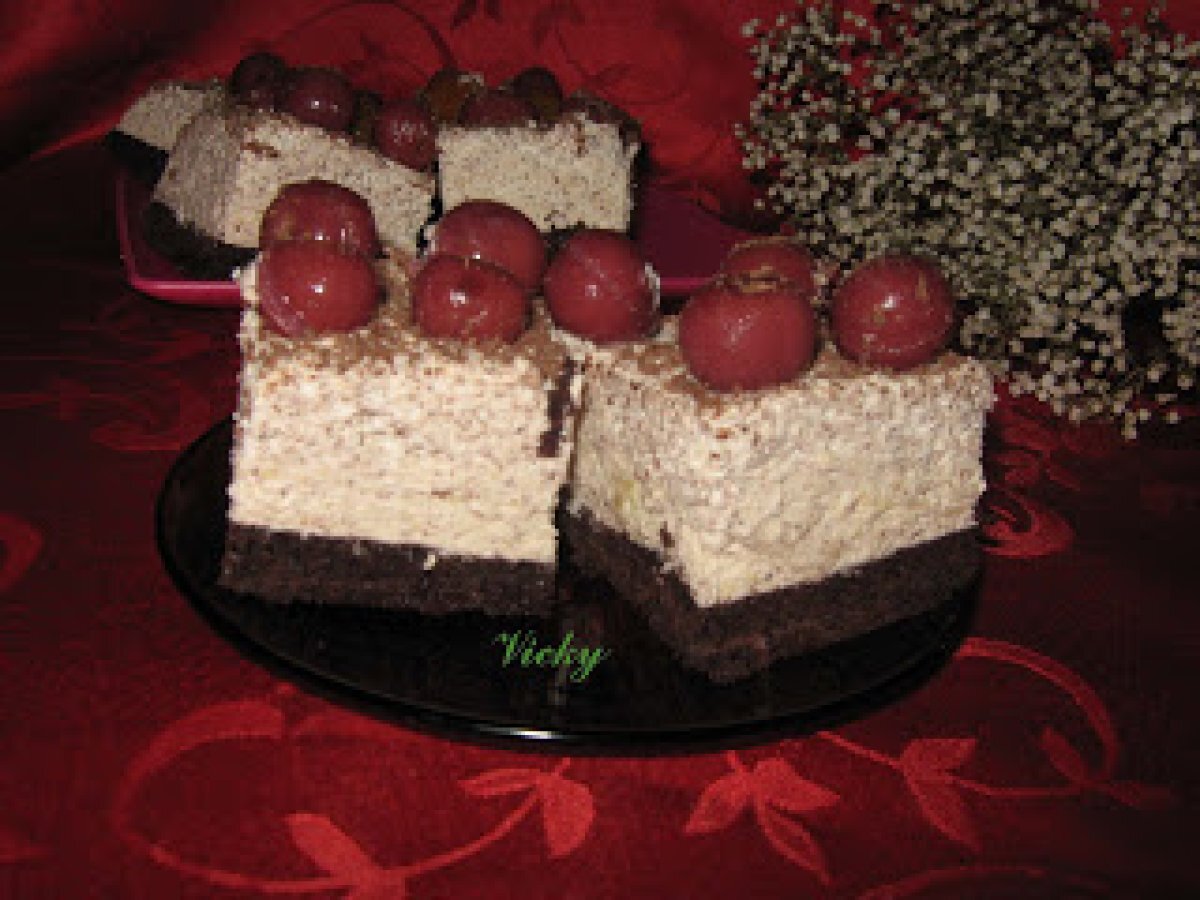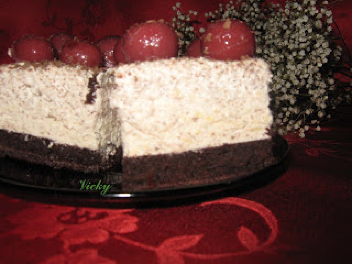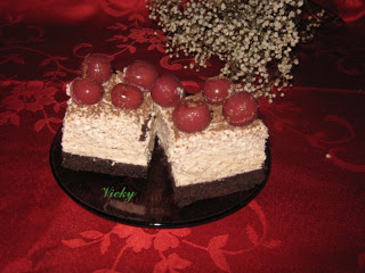 Prajitura cu rom si visine PrecedentulUrmătorul DesertFoarte ușor1 h 50 m Trimite unui prieten Printează pagina Adresează o întrebare autorului Postează o poză cu rețeta gătită de tine Ingrediente 5 4 oua 120 g zahar tos 4 linguri apa fierbinte 130 g faina 30 g cacao 1 pliculet praf de copt Pentru crema:4 galbenusuri 400 ml frisca lichida 1 pliculet de gelatina 1 ciocolata cu lapte 100 g zahar 125 ml rom 1 borcan de compot de visine