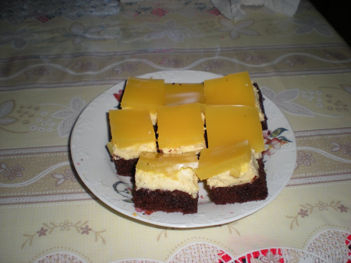 Prajitura cu suc de portocale DesertDificil5 ore Trimite unui prieten Printează pagina Adresează o întrebare autorului Postează o poză cu rețeta gătită de tine Ingrediente 8 PT BLAT: 6 oua, 100 ml ulei, 6 linguri zahar, 2 linguri cacao, 4 linguri faina, 1 plic praf de copt. PT CREMA: 500 g branza de vaci, 200 g unt, 150 g zahar, 1 fiola esnta de vanilie, 1 lingura coaja de portocala. PT GLAZURA; 850 ml suc de portocale, 2 plicuri pudinga de vanilie, 5 linguri zahar.