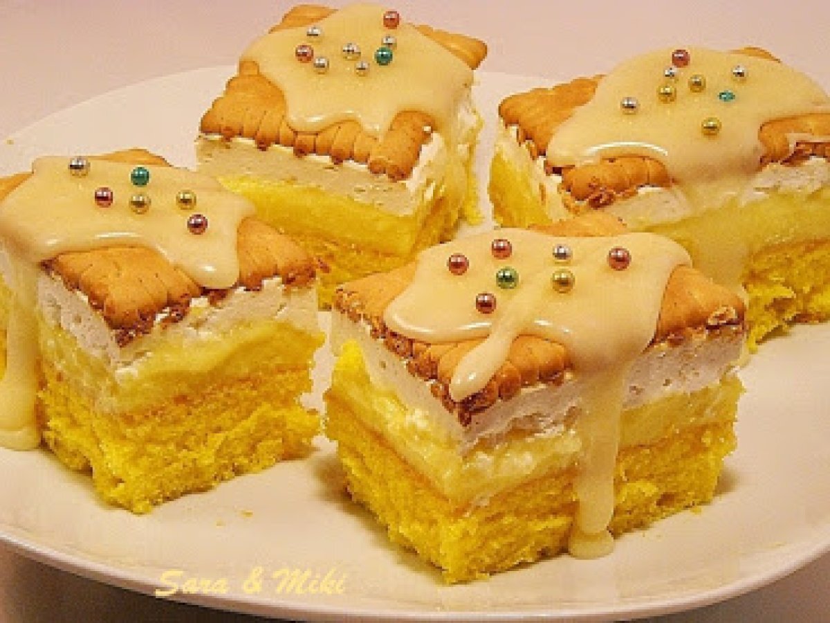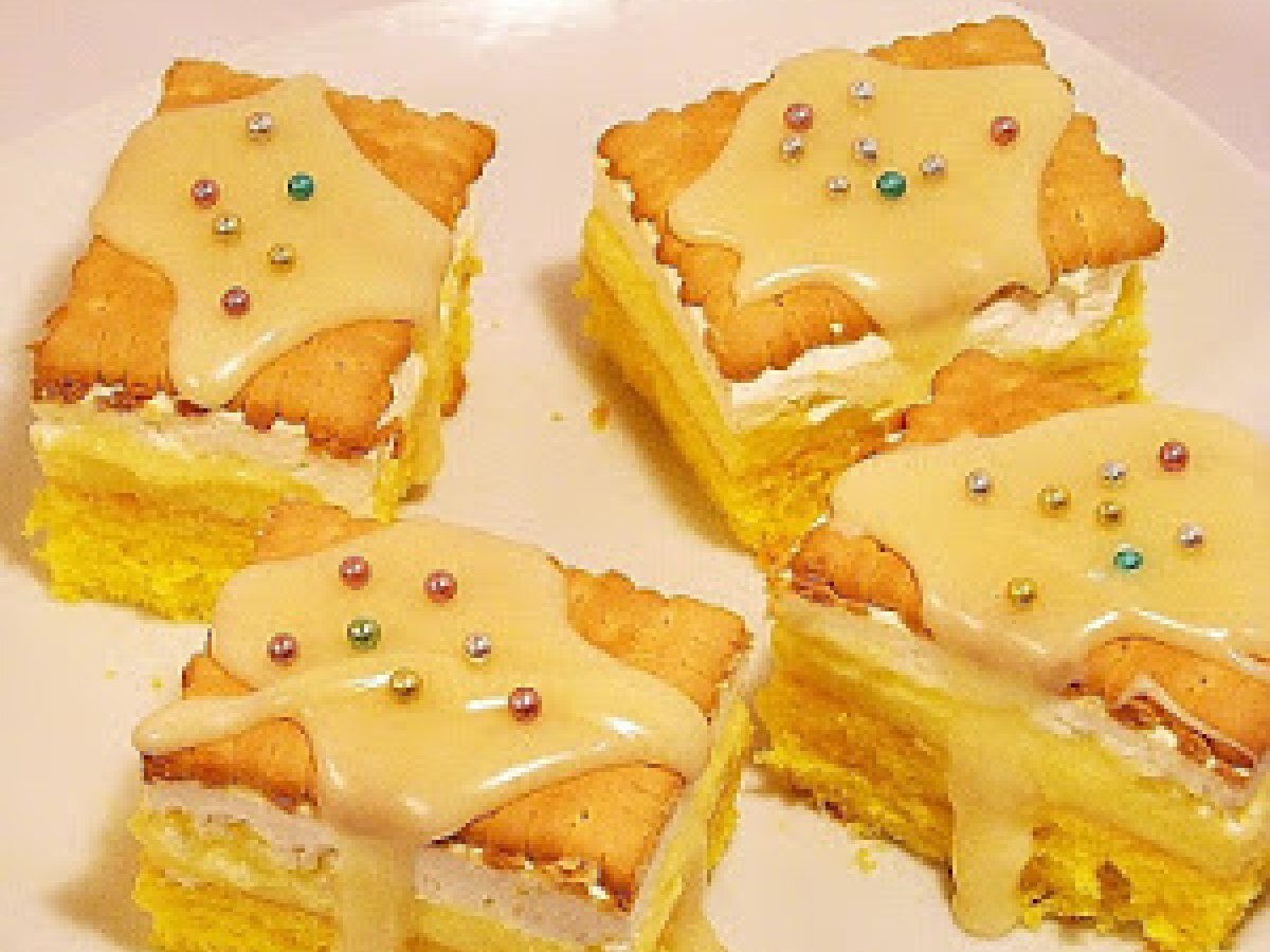 Prajitura cu unt si biscuiti PrecedentulUrmătorul DesertFoarte ușor55 min Trimite unui prieten Printează pagina Adresează o întrebare autorului Postează o poză cu rețeta gătită de tine Ingrediente 8 Blat: 4 oua 200 g unt 200 g de zahar 1 plic zahar vanilat 250 g faina 1 lamaie 1 praf de copt sirop Crema vanilie: 2 plicuri budinca de vanilie 600 ml lapte, 5-6 linguri de zahar 100 g. unt Crema de branza 250 g crema de branza 250 ml frisca dulce 100 g biscuiti cu unt Petit BeurreDecor: 200 g ciocolata alba 80 g frisca lichida