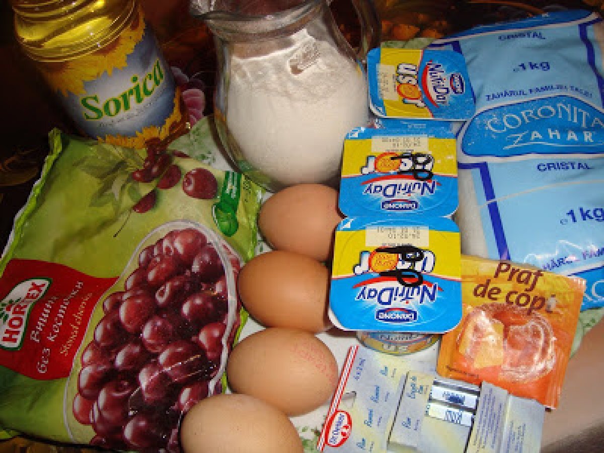 Prajitura cu visine si iaurt PrecedentulUrmătorul DesertFoarte ușor1 h 30 m Trimite unui prieten Printează pagina Adresează o întrebare autorului Postează o poză cu rețeta gătită de tine Ingrediente 6 4 oua 15 linguri zahar 10 linguri ulei 300 g iaurt 1 praf copt 1 cana faina 1 esenta rom 1/2 kg visine