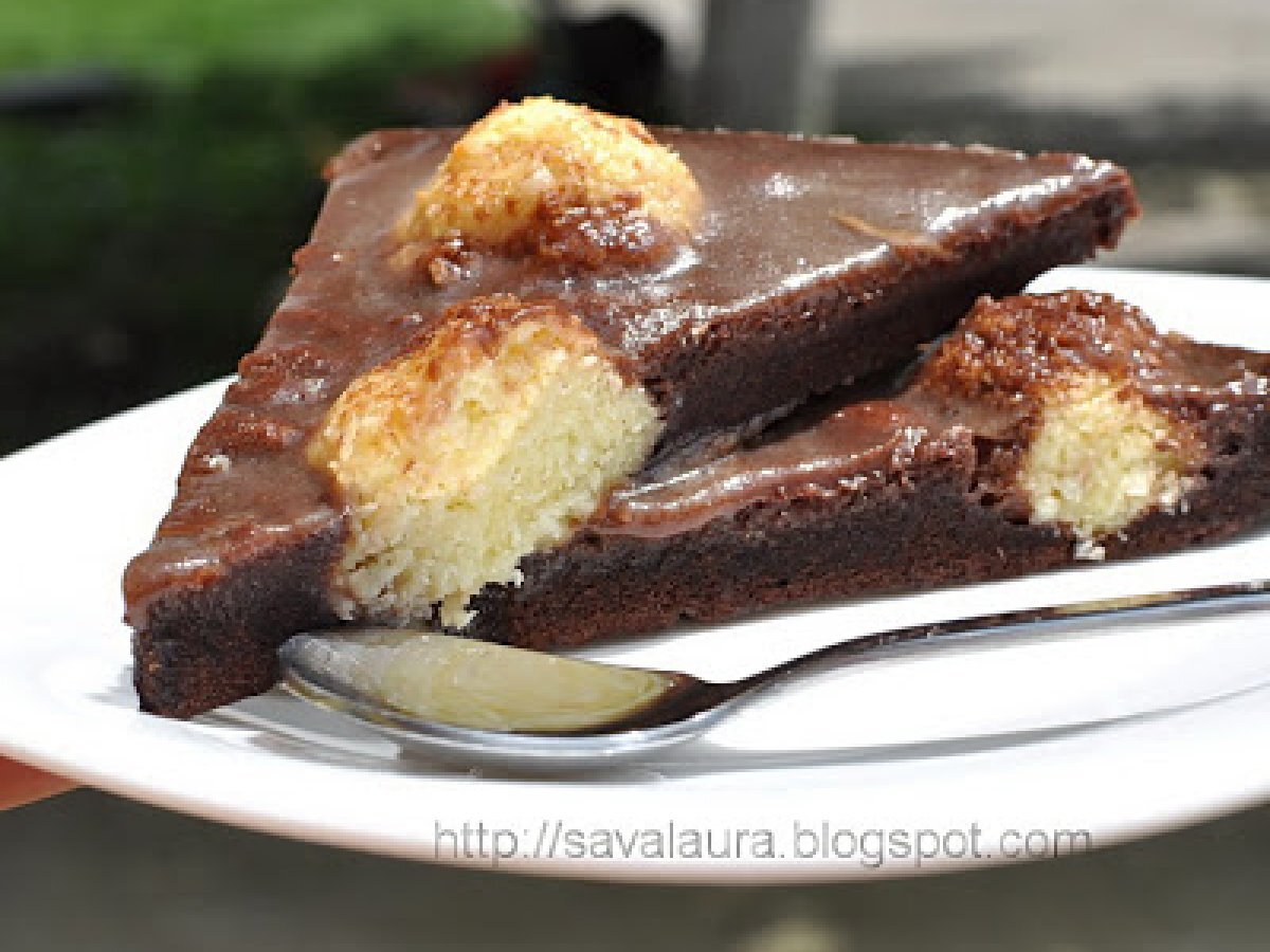 Prajitura de ciocolata cu bilute de branza si cocos PrecedentulUrmătorul DesertFoarte ușor55 min Trimite unui prieten Printează pagina Adresează o întrebare autorului Postează o poză cu rețeta gătită de tine Ingrediente 6 Bilute de branza si cocos: 250 g. branza dulce 50 g. nuca de cocos rasa 50 g. zahar 2 galbenusuri 3 linguri amidon Blat de ciocolata: 4 oua 60 g. zahar 50 g. ciocolata topita 2 linguri faina 2 linguri amidon 3 linguri cacao un praf de sare un varf de cutit praf de copt Glazura: 120 ml. lapte 50 g. zahar 25 g. unt 100 g. ciocolata