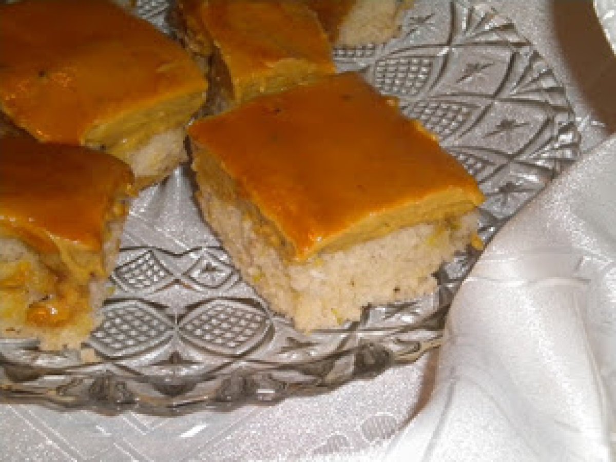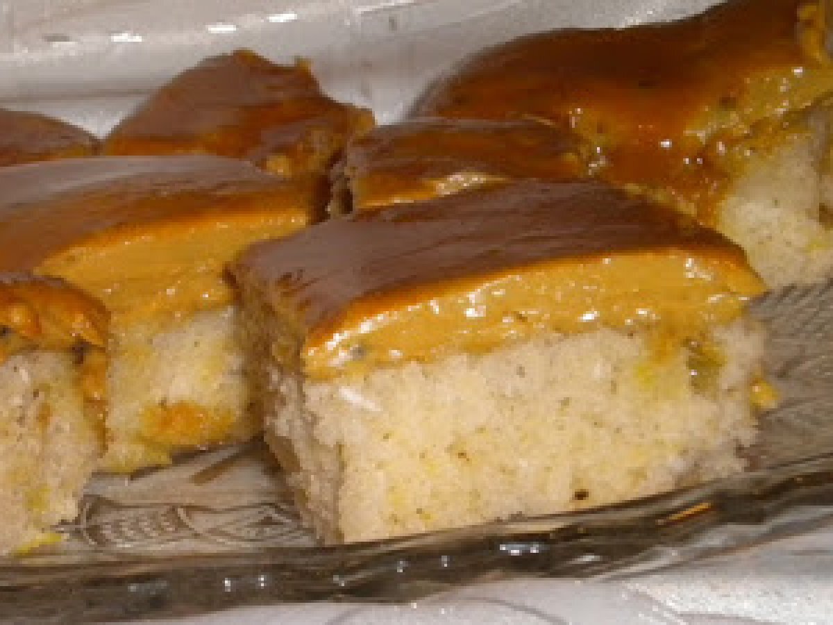 Prajitura de post cu crema de ness PrecedentulUrmătorul DesertFoarte ușor55 min Trimite unui prieten Printează pagina Adresează o întrebare autorului Postează o poză cu rețeta gătită de tine Ingrediente 8 blatul: un pahar de zahar, 2 pahare de faina, un pahar de apa, 1/2 pahar de ulei, 3 linguri de miere, o lingura rasa de nuca de cocos , 1/2 pliculet de praf de copt, 2 linguri de rom, coaja de lamaie, o mana de stafide. Tava de 20/30 cm, hartie de copt. crema: un pachet de margarina Rama, o jumatate de borcan de miere , 6 lingurite pline de ness, 2 lingurite apa calda, o lingura de rom. glazura de caramel de la dr. Oetker.