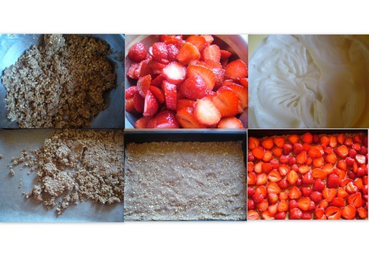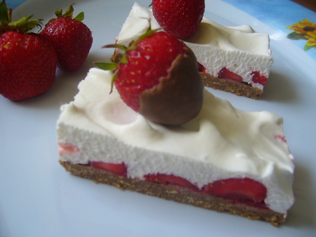 Prajitura fara coacere cu capsuni PrecedentulUrmătorul DesertFoarte ușor30 min Trimite unui prieten Printează pagina Adresează o întrebare autorului Postează o poză cu rețeta gătită de tine Ingrediente 8 1oo gr ciocolata, 130 gr biscuiti populari macinati, 50 ml frisca lichida, 3-4 lg lapte, 300 gr capsuni, 4 lg zahar, 250 ml frisca, 2 lg zahar praf, 1 lg gelatina.