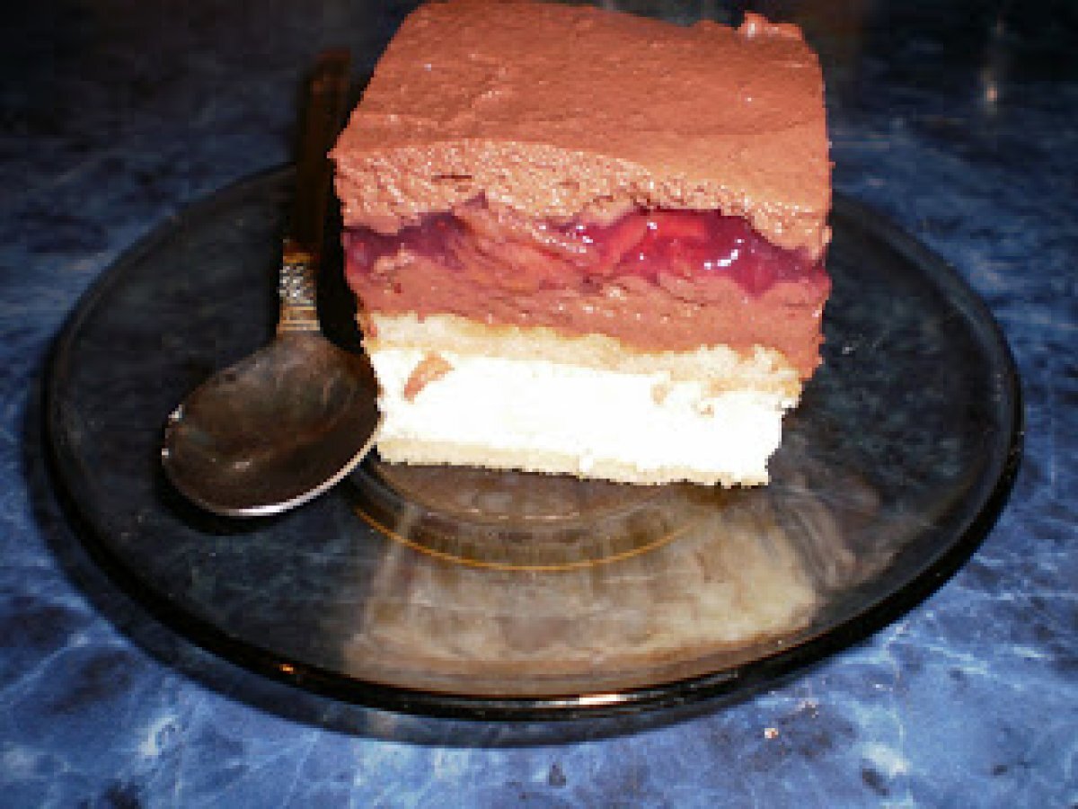 Prajitura "fara nume" PrecedentulUrmătorul DesertFoarte ușor1 h 10 m Trimite unui prieten Printează pagina Adresează o întrebare autorului Postează o poză cu rețeta gătită de tine Ingrediente 4 2 foi Pandispan 2 plicuri Crem Ole ciocolata 2 plicuri Crema de tort cu rom si trufe 1 plic Crema de tort de vanilie 1 plic Crema de la fantezie cu capsuni 1 1/2 l lapte rece dulceata de visine sau fructe de padure 100 ml suc de portocale