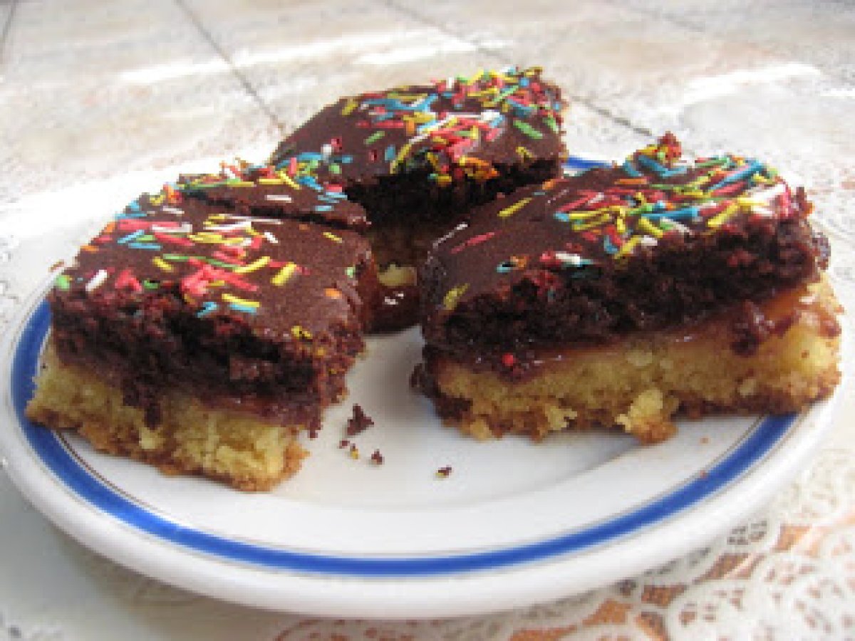 Prajitura in doua culori, de post DesertFoarte ușor50 min Trimite unui prieten Printează pagina Adresează o întrebare autorului Postează o poză cu rețeta gătită de tine Ingrediente 6 o cana apa minerala 1 cana zahar 1/2 cana ulei 1 1/2 cana faina 2 linguri cacao 5-6 linguri gem 1 praf de copt 1 zahar vanilat esesta de rom