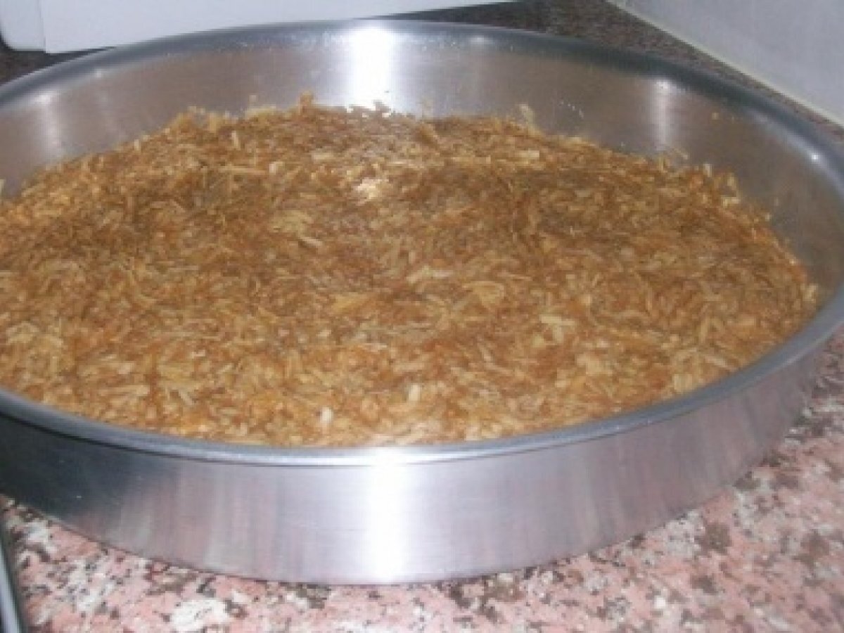 Prajitura intoarsa cu mere si biscuiti PrecedentulUrmătorul DesertFoarte ușor Trimite unui prieten Printează pagina Adresează o întrebare autorului Postează o poză cu rețeta gătită de tine Ingrediente 6 7 oua 150 ml apa 300 g zahar 250 g faina 100-120 ml ulei 1 si 1/14 kg mere(se pot si ceva mai mult) 180-200 g biscuiti cca 50 g nuci arome cca 2 linguri de gris cca 1/2 lingurita de scortisoara