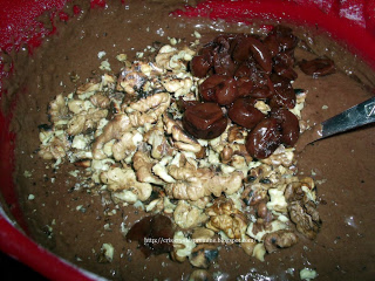 Prajitura "ora 12" PrecedentulUrmătorul DesertFoarte ușor55 min Trimite unui prieten Printează pagina Adresează o întrebare autorului Postează o poză cu rețeta gătită de tine Ingrediente 8 1 1/2 cana zahar 1 1/2 cana faina 1 cana de lapte 1 cana de ulei 5 oua 4 linguri de cacao 6 linguri de nuca macinata un plic de zahar vanilinat un plic de praf de copt o cana plina cu bucati mari de nuca prajite inprealabil 50 g stafide inmuiate in visinata o mana de visine din visinata