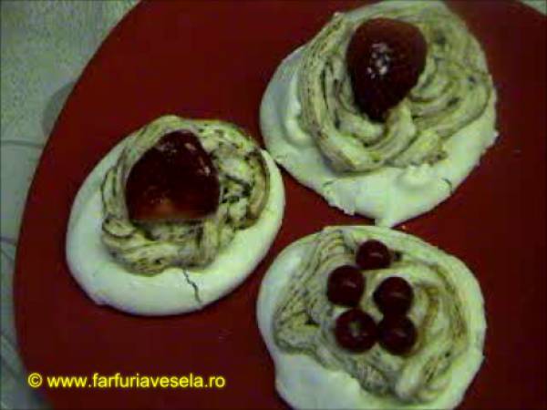 Un dulce care se pregateste repede, ideal pentru week-end pentru ca il puteti pregati impreuna cu copiii. In timp ce bezeaua este la cuptor, copiii cu siguranta vor savura momentul cand facem frisca si vor manca deja fructele:) Cel putin la noi, copiii mananca fructele inainte ca prajitura sa fie gata. Asta dupa ce au gustat si din bezea inainte de a se coace, desigur !