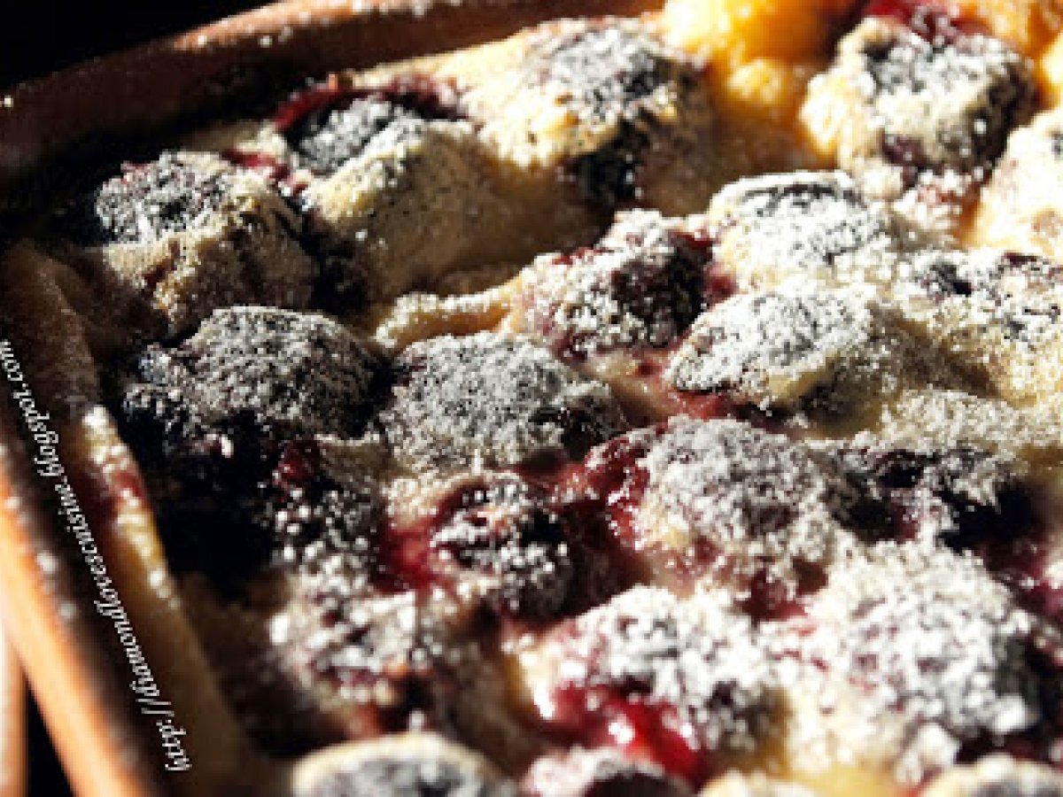 Prajitura rapida cu cirese - clafoutis aux cerises PrecedentulUrmătorul DesertFoarte ușor50 min Trimite unui prieten Printează pagina Adresează o întrebare autorului Postează o poză cu rețeta gătită de tine Ingrediente 8 500 g. cirese curatate de cozi si de sîmburi 3 linguri zahar 3 linguri faina 3 oua 1/4 l lapte un praf de sare 1 plic zahar vanilescu 1 paharel lichior de visine/cirese- optional unt pt uns tava zahar pudra- pt deasupra