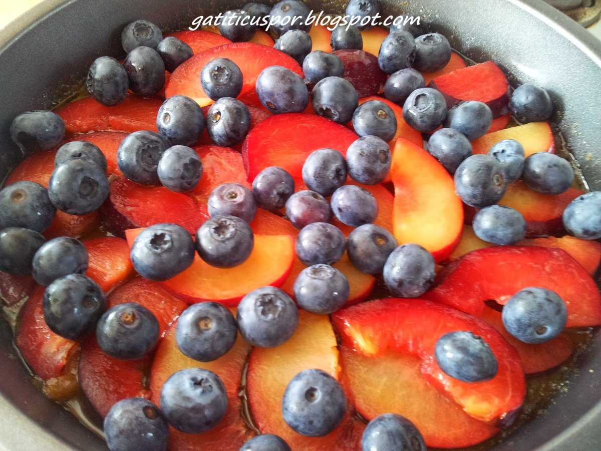 Prajitura rasturnata cu prune si afine PrecedentulUrmătorul DesertUșor1 oră Trimite unui prieten Printează pagina Adresează o întrebare autorului Postează o poză cu rețeta gătită de tine La inceput de toamna va aduc o prajitura cu prune!!! Ingrediente 8 150 g faina 1 1/2 lingurita praf de copt un varf lingurita sare 50 g unt pentru caramelizat 50 g zahar brun 75 g unt 200 g zahar 1 ou 1 lingurita esenta de vanilie 175 ml lapte dulce 4-6 prune 125 g afine