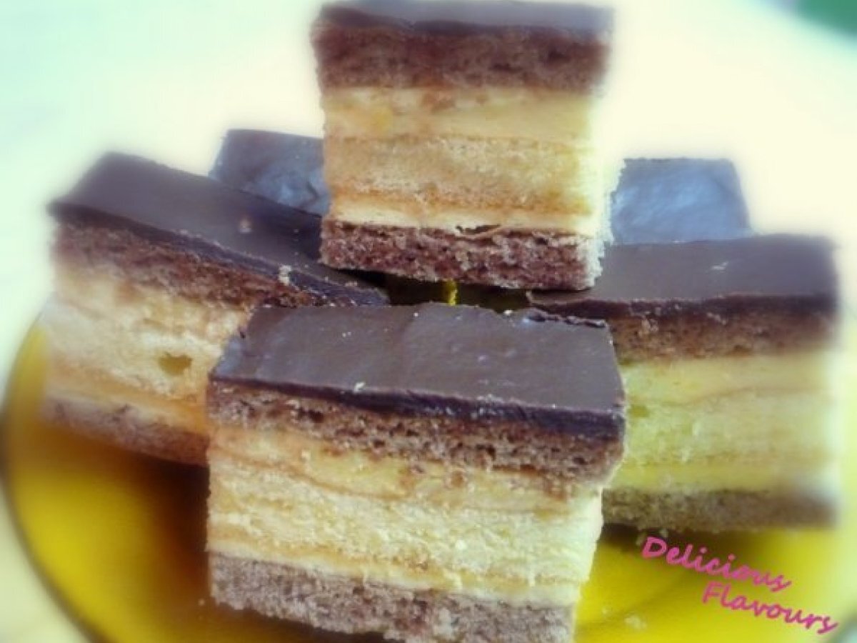 Prajitura "televizor" DesertFoarte ușor1 h 30 m Trimite unui prieten Printează pagina Adresează o întrebare autorului Postează o poză cu rețeta gătită de tine Ingrediente 4 Timp de preparare: 1 ora si 10 minute (complexitate redusa) Ingrediente: Ingrediente pentru blat: 5 oua 5 linguri de zahar 5 linguri de faina 1 praf de copt Ingrediente pentru foi: 1 ou 4-5 linguri ulei 4-5 linguri zahar 2 linguri cacao 100 ml lapte 1 pliculet de amoniac faina cat cuprinde Ingrediente pentru crema: 1l lapte 2 budinci de vanilie 5 linguri de faina 8 linguri de zahar 150 g margarina sau unt