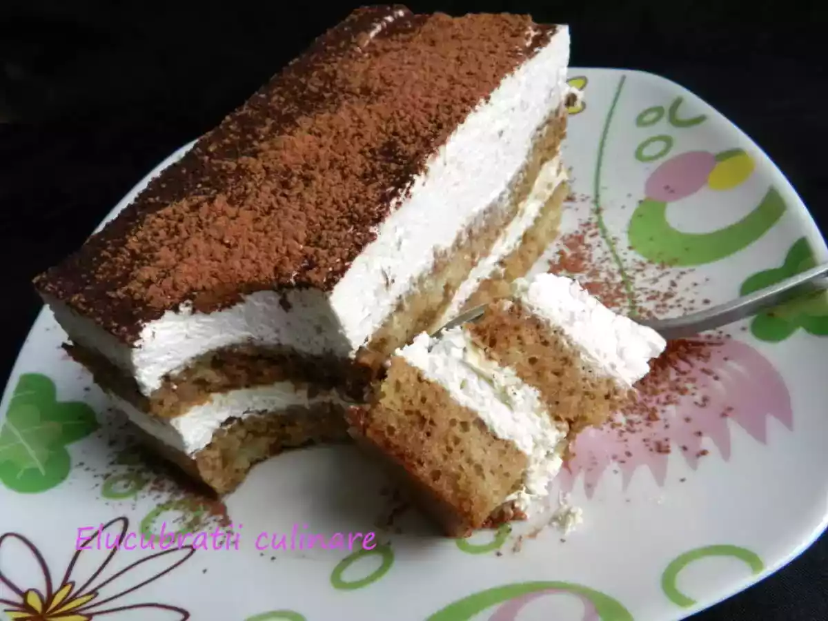 Prăjitură tiramisu PrecedentulUrmătorul DesertFoarte ușor50 min Trimite unui prieten Printează pagina Adresează o întrebare autorului Postează o poză cu rețeta gătită de tine un desert deosebit Ingrediente 8 Blat: 5 gălbenușuri 150 g zahăr 5 albușuri 150 g făină 1 lingură praf de copt 3 linguri miere Crema: 250 ml smântână pentru frișcă 500 g mascarpone 50 ml Amaretto- lichior de migdale 3 linguri miere 300 ml cafea espresso 50 ml Amaretto - lichior de migdale 1 lingură pudră cacao