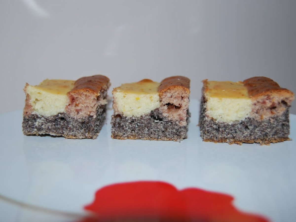 Prajitura trei culori PrecedentulUrmătorul DesertFoarte ușor1 oră Trimite unui prieten Printează pagina Adresează o întrebare autorului Postează o poză cu rețeta gătită de tine Ingrediente 4 300 g faina 1 praf de copt 3 oua 5 linguri ulei 20 linguri de lapte 150 gr zahar 1 zahar vanilat 150 gr mac macinat 1 lamaie 2 linguri de gem