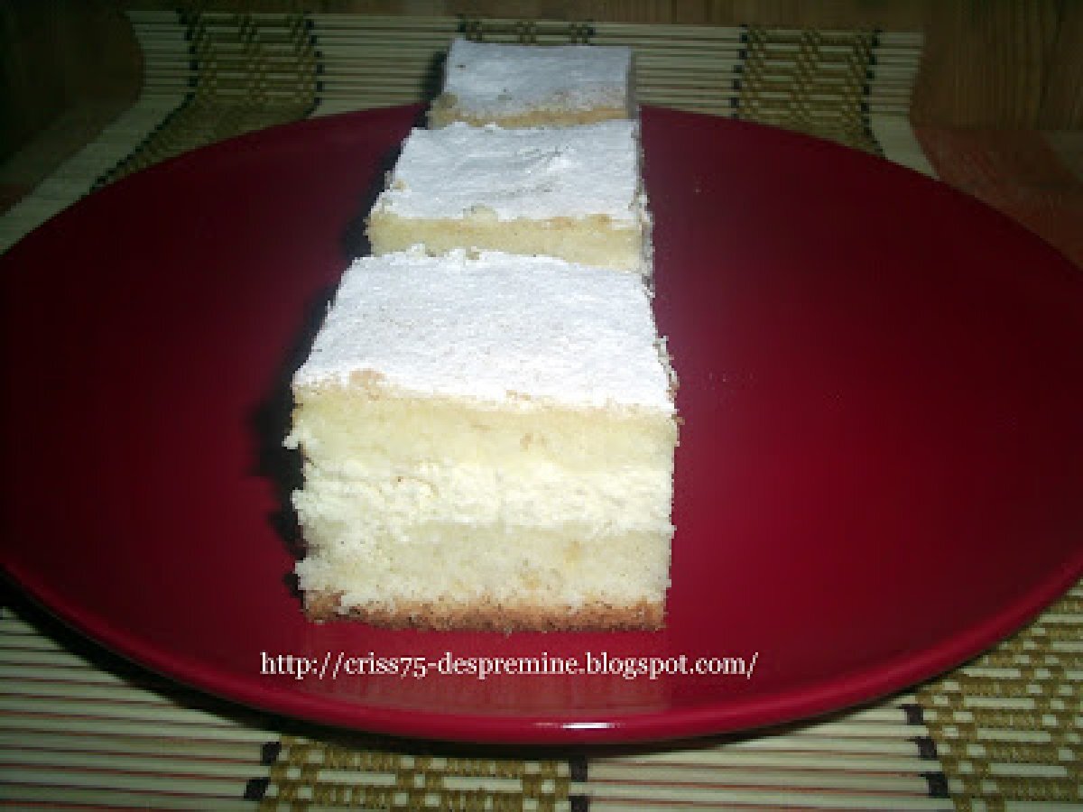 Prajitura turnata cu branza PrecedentulUrmătorul DesertFoarte ușor50 min830 Kcal Trimite unui prieten Printează pagina Adresează o întrebare autorului Postează o poză cu rețeta gătită de tine Ingrediente 6 4 oua 18 linguri zahar 18 linguri ulei 18 linguri lapte 24 linguri faina 1 praf de copt 1 zahar vanilat Cost estimat: 3.31Euros€ (0.55€/porție)
