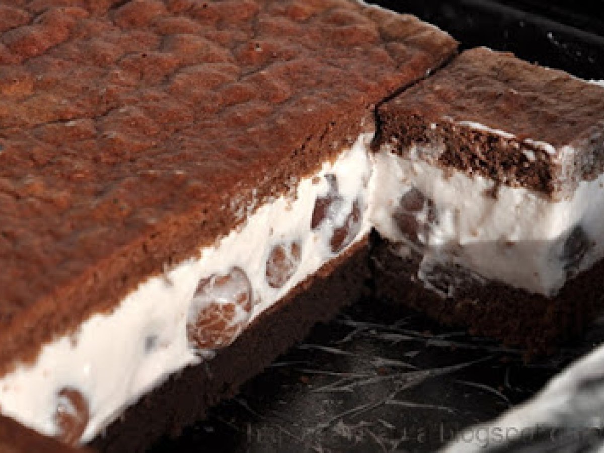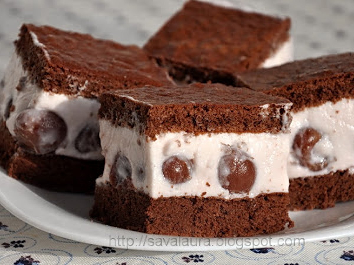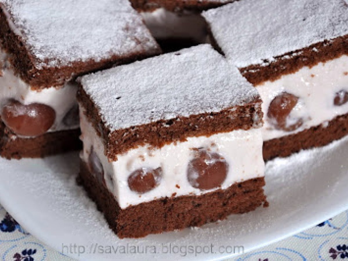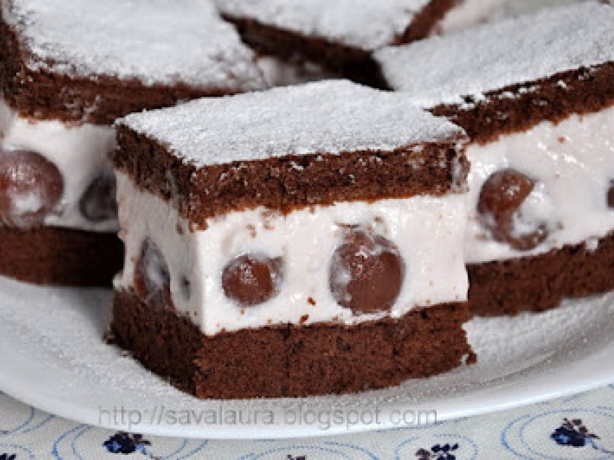 Prajitura usoara cu iaurt, frisca si cirese PrecedentulUrmătorul DesertFoarte ușor55 min Trimite unui prieten Printează pagina Adresează o întrebare autorului Postează o poză cu rețeta gătită de tine Ingrediente 8 Pentru blat: 8 oua 120 g. zahar 80 g. faina 20 g. amidon 30 g. cacao Pentru crema: 6 foi gelatina sau 1 pliculet gelatina granule (10 g.) 400 g. iaurt 150 g. zahar 1 borcan compot de cirese (580 ml.) 300 ml. frisca lichida zahar pudra, pentru ornat